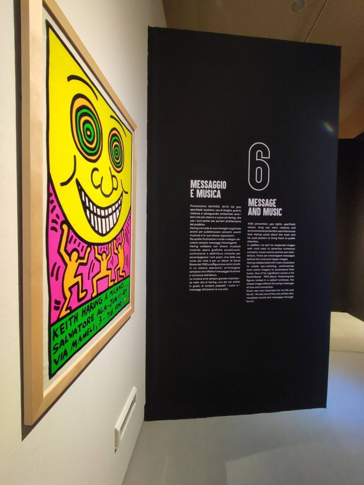L'allestimento ripercorre l'intera carriera dell'artista: dalle sue inconfondibili icone, antesignane delle odierne emoji, fino alle sue vivacissime serigrafie. Chi non ha mai visto, almeno una volta nella vita, il famoso bambino radiante stilizzato? E chi non si è mai imbattuto nei suoi omini colorati, rappresentati ormai ovunque, persino su t-shirt e spillette?