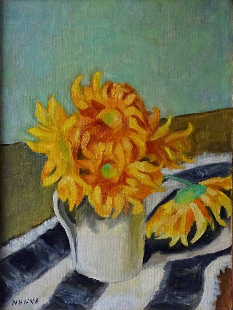 Storia della pittrice nascosta è una sorta di documentario pittorico in cui si snodano racconti personali, familiari narrati attraverso angoli domestici che diventano riflessione filosofica e di ricerca pittorica, "giardini segreti" con un'opulenza di fiori dai petali lussureggianti, di rose che ritornano negli anni e si declinano sempre diverse, insieme a mazzetti di oleandri rubati dai cespugli dell'arredo urbano sotto casa. Sono soprattutto i fiori a costituire una trama, una grammatica della sua arte (Le gerbere per Lavinia, e Oleandro rosso di via Pavese –in mostra e allegato) e una geografia sentimentale del dono e dell'offerta: spesso i dipinti portano i nomi di chi porta i fiori o di coloro ai quali sono offerti.