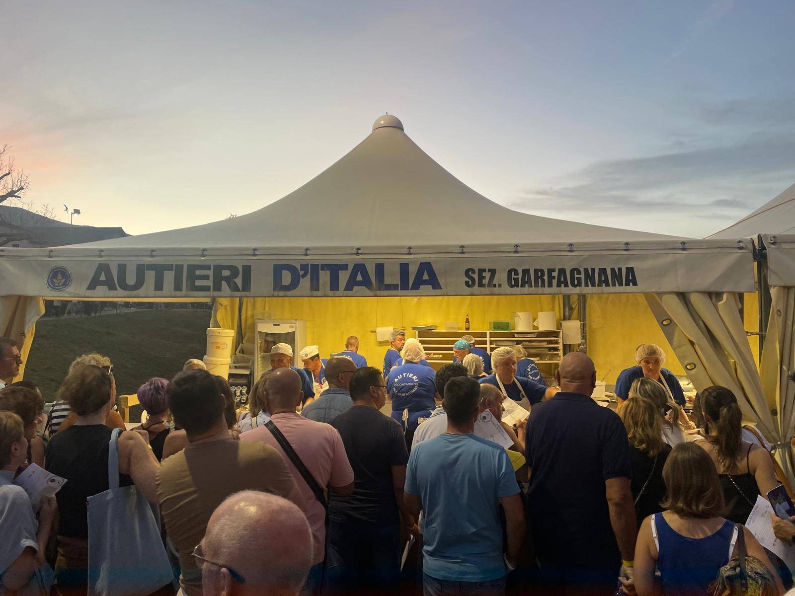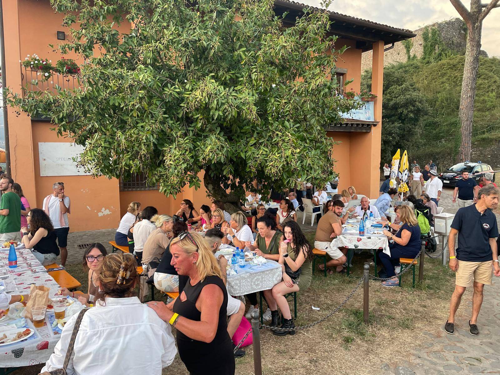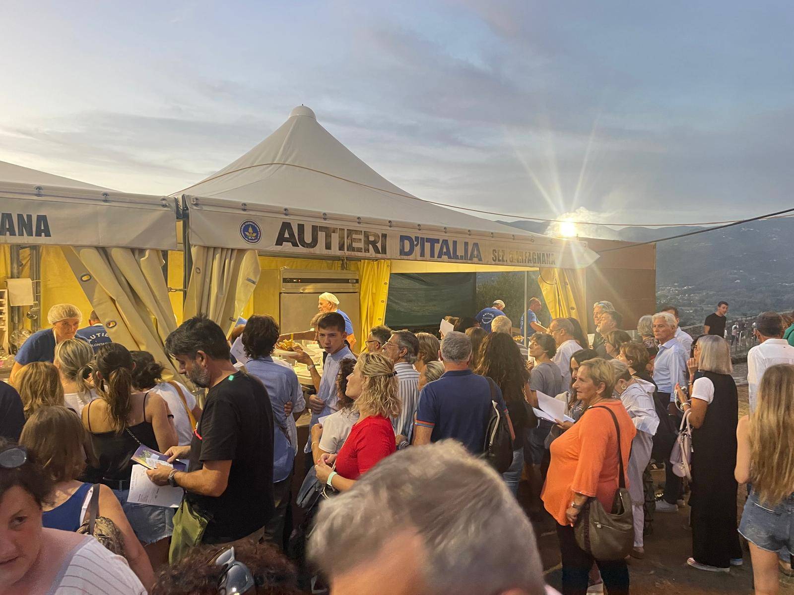 Idea geniale, consentitecelo, la presenza di stand, pochi, ma buoni, efficienti ed efficaci, per alleviare e soddisfare gli istinti fagici degli spettatori i quali trovano, al loro arrivo, una sorta di 'spianata' dove poter sedere e mangiare in santa pace ai piedi di un panorama meraviglioso con le pendici delle Apuane in lontananza. Prezzi modici, ottima la polenta con il ragù e il pecorino, ma niente male anche la grigliata e il resto del menu. Una sagra? Diciamo qualcosa di più, con una dedizione dei volontari che è ammirevole e indispensabile alla riuscita dell'intera serata.