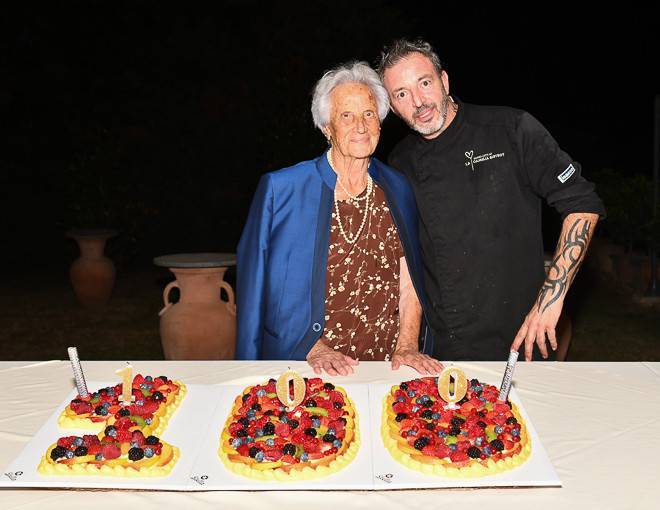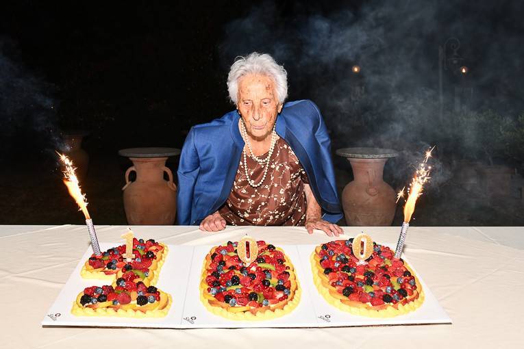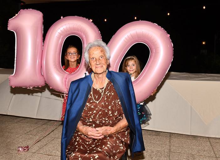 Cento anni, cento primavere e altrettanti inverni, autunni ed estati sulle spalle e, in fondo, non sentirli neppure o quasi. Ecco, per Velia Bonanni, che i cento anni li ha compiuti giovedì 8 agosto, segno zodiacale leone, quell di ieri sera a Villa Cheli, circondata dall'affetto delle tre figlie e dei nipoti, è stata una festa all'insegna della leggerezza del tempo che passa. Perfino il cielo, scuro e stellato, ha accolto con piacere i fuochi d'artificio appositamente dedicati a lei da tutti coloro che, in questo nuovo millennio, le sono accanto a questo traguardo più unico che raro. Per lei e per gli altri ospiti dell'evento organizzato a Villa Cheli a Massa Pisana ha cucinato uno chef d'eccezione, di cuore e d'animo oltreché di bravura: Mirko Citti e, al termine, un dolce anzi, tre dolci raffiguranti, ognuno, un numero e, insieme, il 100!