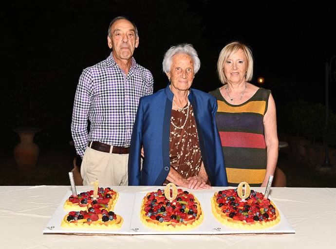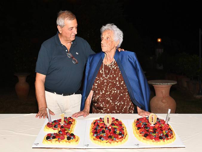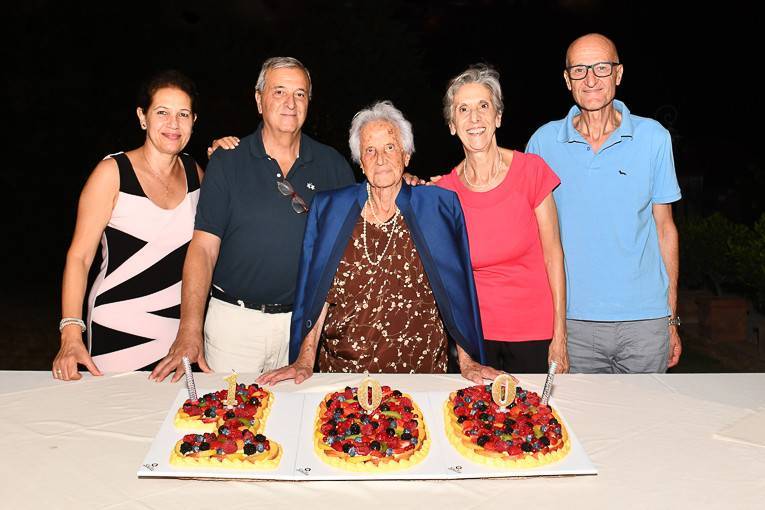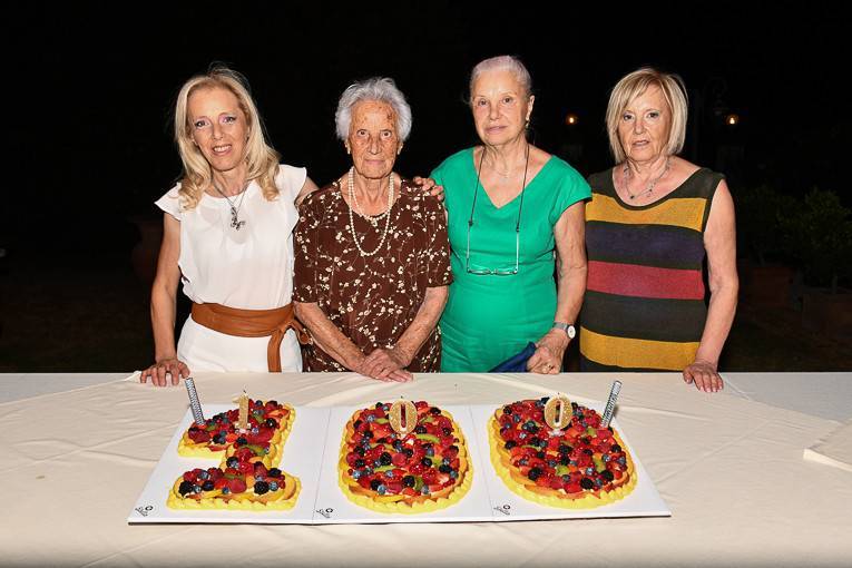 Ed è proprio a Fiuggi che la signora Velia conobbe, negli anni Quaranta del secolo scorso, quello che, di lì a poco, nel 1945, sarebbe diventato suo marito, Corrado Matteucci, poliziotto, nativo di Cerasomma, trasferito nel Lazio per motivi di lavoro. La coppia, dopo le nozze, tornò proprio nella frazione lucchese e qui sono cresciute le tre figlie, Roberta, Carla e Dinora. Tutte presenti alla serata per abbracciare per l'ennesima volta la propria mamma in splendida forma. E con loro, oltre ai generi, anche gli immancabili nipoti, Lina, Serena, Riccardo, Fabio e Francesco. Una trentina di persone che hanno dato vita a un evento affettivamente straordinario al quale Mirko Citti e il suo staff hanno dato il loro immancabile tocco di bontà gastronomica.