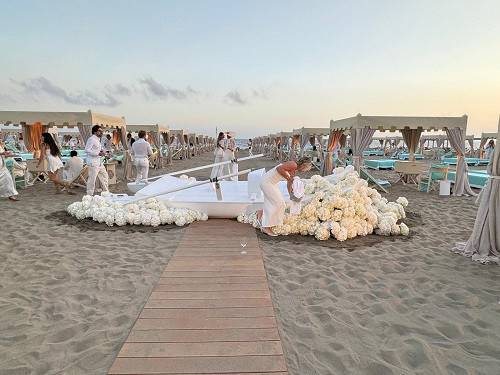 Musica mai invasiva, da ballare con gli ospiti che, sul tardi, si sono, letteralmente, scatenati sulla pedana realizzata ad hoc. Difficile se non impossibile ritrovare, andando indietro nel tempo recente, una festa di tale fattura e di così alto livello. Un Bagno, l'Alpemare, che la famiglia Bocelli detiene e gestisce dal 2017, dove il lusso c'è, eccome, lo si vede e lo si percepisce, ma senza mai diventare sfarzo fine a se stesso.