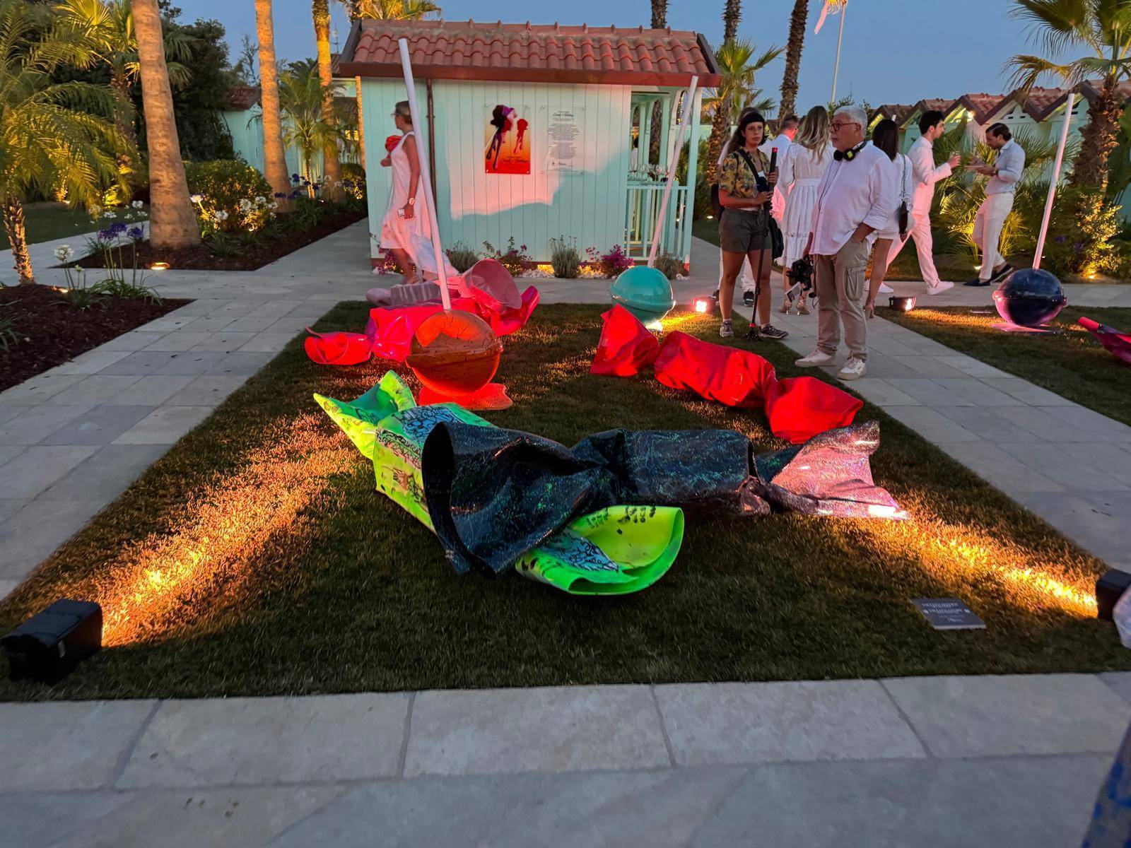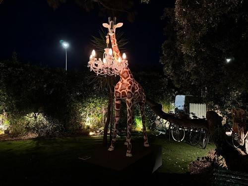 Due parole, necessarie, sugli addobbi floreali e sul giardino, curato nei minimi dettagli e rigoglioso quant'altri mai: complimenti a colui che se ne è occupato: un angolo di paradiso con due giraffe illuminate da altrettanti lampadari pendenti dal muso: trovata geniale e per nulla kitsch a differenza di altri lidi.
