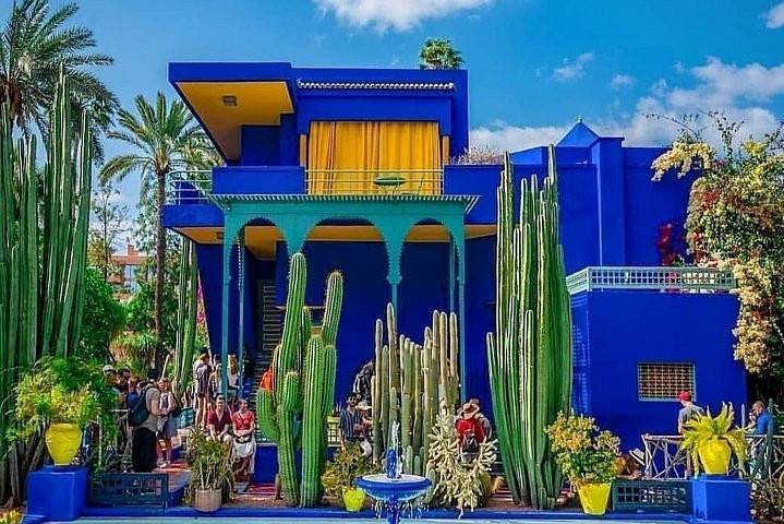 Ulivi e piccole graminacee, classiche piante aromatiche, colossi di piante grasse in fioritura, il tutto enfatizzato da un allestimento colorato e coinvolgente che ricorda tanto il JARDIN MAJORELLE a Marrakech ricercato buen retiro caro ad Yves Saint Laurent.