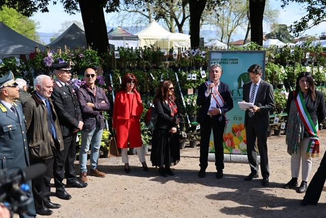 Al taglio del nastro fra le tante autorità presenti: l'assessore alla cultura Mia Pisano, insieme agli assessori alle attività produttive Paola Granucci, all'ambiente Cristina Consani e all'istruzione Simona Testaferrata, l'onorevole Elisa Montemagni, l'assessore regionale Stefano Baccelli, il questore Edgardo Giobbi, il vice prefetto vicario Giuseppina Cassone, la dirigente dell'ufficio scolastico di Lucca Ilaria Baroni, insieme al presidente di Lucca Crea Nicola Lucchesi e al direttore generale Emanuele Vietina.