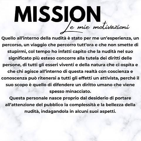 Ida Andrea Gulino (vicepresidente di Nudiverso) in questa mostra racconta panorami composti da corpi nudi, da sguardi e da prospettive fotografiche inusuali, da punti di vista inconsueti che ci costringeranno a ripensarci. La sfida è utilizzare la fotografia, da sempre mezzo che aspira alla completa oggettività (sapendo di poterla solo ambire, sfiorare, accarezzare con lo sguardo indiscreto, a volte impietoso, o delicato e leggero di un obiettivo che indaga e scruta – un tendere al suo limite, senza mai raggiungerlo) per poter provare a raccontarla, la verità. Quella però nuda, senza filtri, quella che ti chiama nel momento in cui decidi di spogliarti, non solo dei vestiti, ma di tutti quei costrutti sociali e culturali che ci circondano, ci abitano dentro e addosso, nascondendoci, proteggendoci…soffocandoci? Generando violenze e soprusi? La nudità sociale sollecita riflessioni molteplici, che riguardano il nostro mondo interiore, la sessualità, il rapporto col nostro essere fisico, i pregiudizi e i tabù…l’estetica contemporanea della perfezione dell’immagine. “Insieme e nudi, sostiene la nostra intrepida avventuriera, siamo uguali: uguali nei diritti, non nelle specificità dei nostri corpi diversi, che invece per fortuna sono diversi, alti bassi grassi magri vecchi giovani. Uguali nel pretendere una libertà che è necessariamente sorella della verità. Saremo capaci di guardarla negli occhi, questa verità nuda? La sentiremo dentro scavare e liberarci, o fuggiremo impauriti all’invito di danzare, nudi, sotto un cielo di stelle libere e felici? Impareremo dalla nuda verità il rispetto delle altre persone, ad amarci per ciò che siamo, ad assaporare i cambiamenti inevitabili dei nostri corpi e di quelli altrui, a vedere con sguardi puri ciò che il mondo condanna e nasconde da sempre, senza sovraccaricare ciò che è, semplicemente, ciò che è? La vera sfida forse non è tanto quella della nostra attivista del naturismo. La sfida siamo noi, che proveremo a vivere una esperienza visiva senza raccontarci bugie. Perché la Nuda Verità sarà lì con noi e ci prenderà, con tanto amore, la nostra mano tremante”, scrivono nella nota i promotori della mostra.