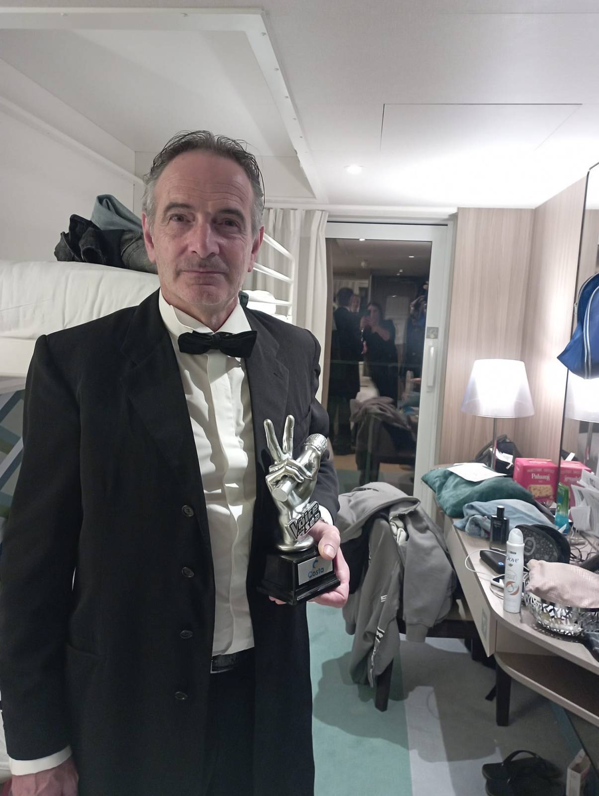 “Un the Voice of the Sea incominciato con 60 cantanti in gara e dove solamente sette andavano in finale - spiega il vincitore capannorese Gianfranco Giusti - dopo un ascolto del secondo gruppo non mi ritenevo all'altezza del concorso . Poi un animatore del The Voice mi fa i complimenti a mia insaputa di essere passato nei primi sette finalisti con il brano Se stiamo insieme sempre di Riccardo Cocciante. Firmati i fogli per la privacy dei contenuti del programma piano piano focalizzavo, ma la strada era dura dove io a quel punto scelgo di portare in finale Margherita indubbiamente una canzone suggestiva di Riccardo Cocciante. Nelle prove non ero riuscito bene abituato a cantare al karaoke e con la musica dal vivo era molto più difficoltoso per me, ma mai arreso a ciò. Avevo e ho fiducia nella mia voce anche se non così perfetta, una voce che mi ha confermato la sua bellezza. Alla finale c’erano tre giudici: Isabella vice capitano, il capitano della Costa Smeralda Giovanni Consoli e la cantante spagnola Nereida Figueroa. Io scelgo il team della cantante Nereida e mi selezionano come finalista. Con il 68 per cento dei voti di un pubblico caloroso e numeroso (circa 2 mila 500 persone) la mia voce vince nel Mediterraneo il The Voice of the Sea sulla nave da crociera Costa Smeralda. E così mi trovo a tornare a casa con la statuetta ufficiale che ritrae il microfono e le due dita a forma di ‘V’ della vittoria e una grande ed immaginabile soddisfazione”.