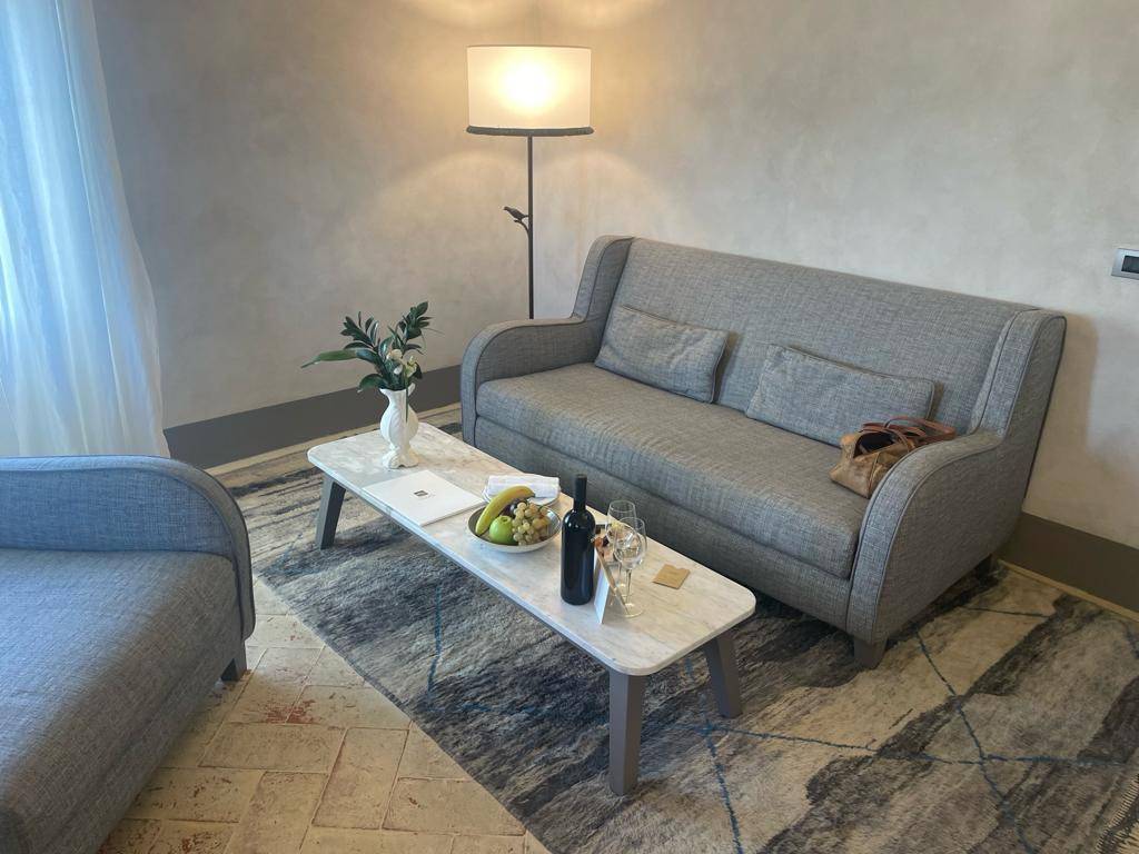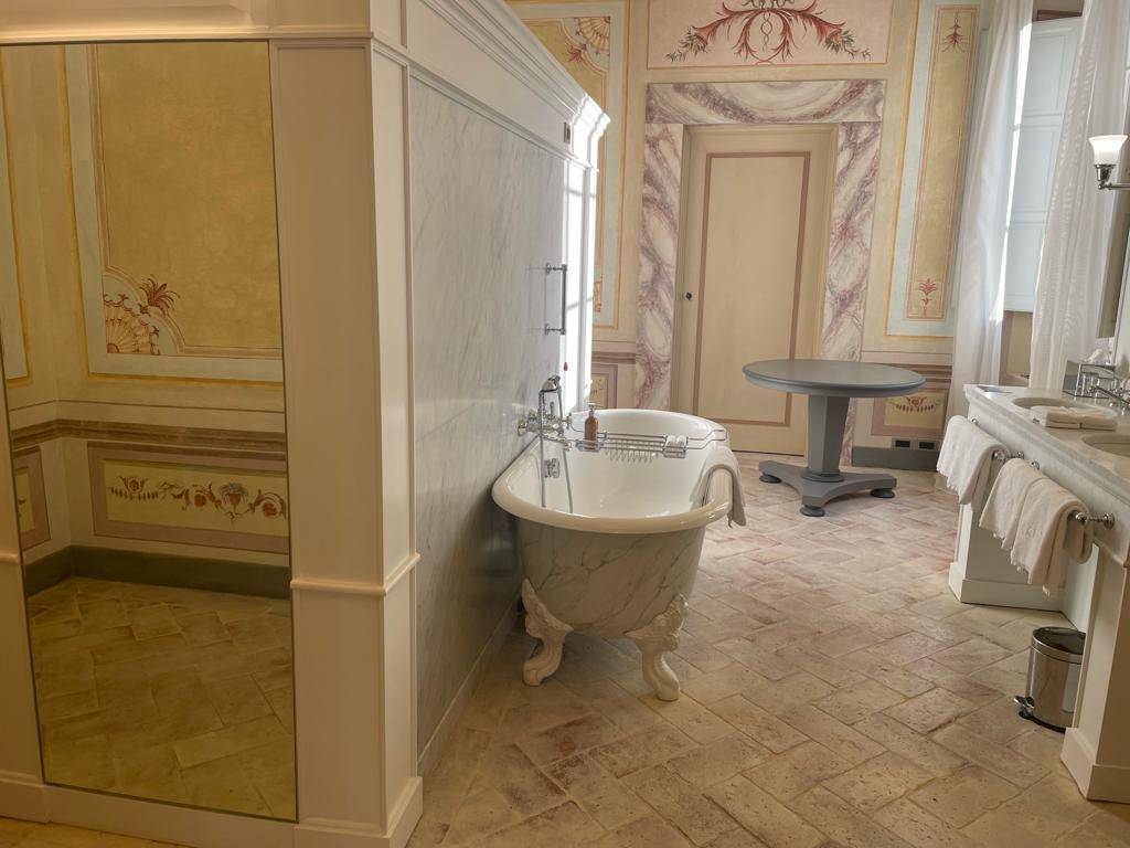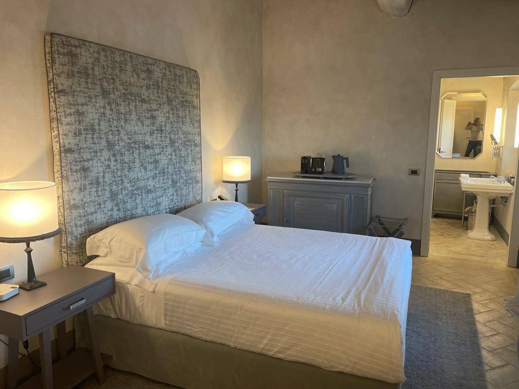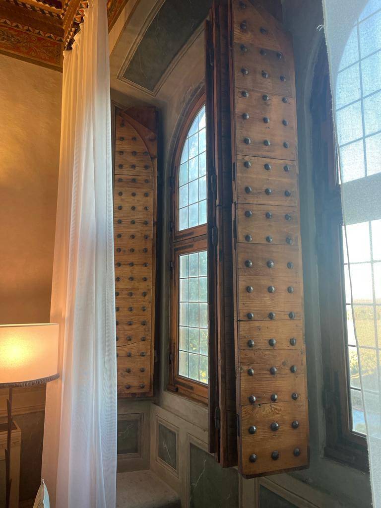 Le camere del castello non sono camere, ma veri e propri mini-appartamenti all'interno dei quali esiste un salottino dove rilassarsi con tanto di scrivania per eventuali necessità professionali, un bagno molto grande con vasca e doccia e anche due eleganti lavandini. Ampi spazi per rendere ogni sosta un piacere del corpo e dell'anima. In dotazione prodotti per il corpo decisamente di livello superiore. Il benvenuto è di qualità eccelsa: frutta di stagione, piccola pasticceria e una bottiglia di vino rosso in omaggio prodotto dall'azienda vinicola interna e dal valore notevolissimo.