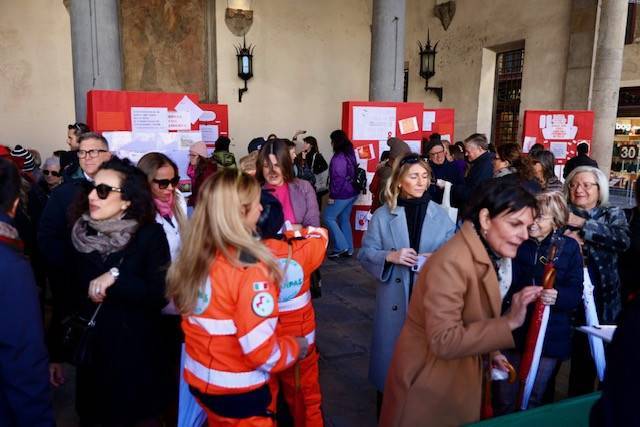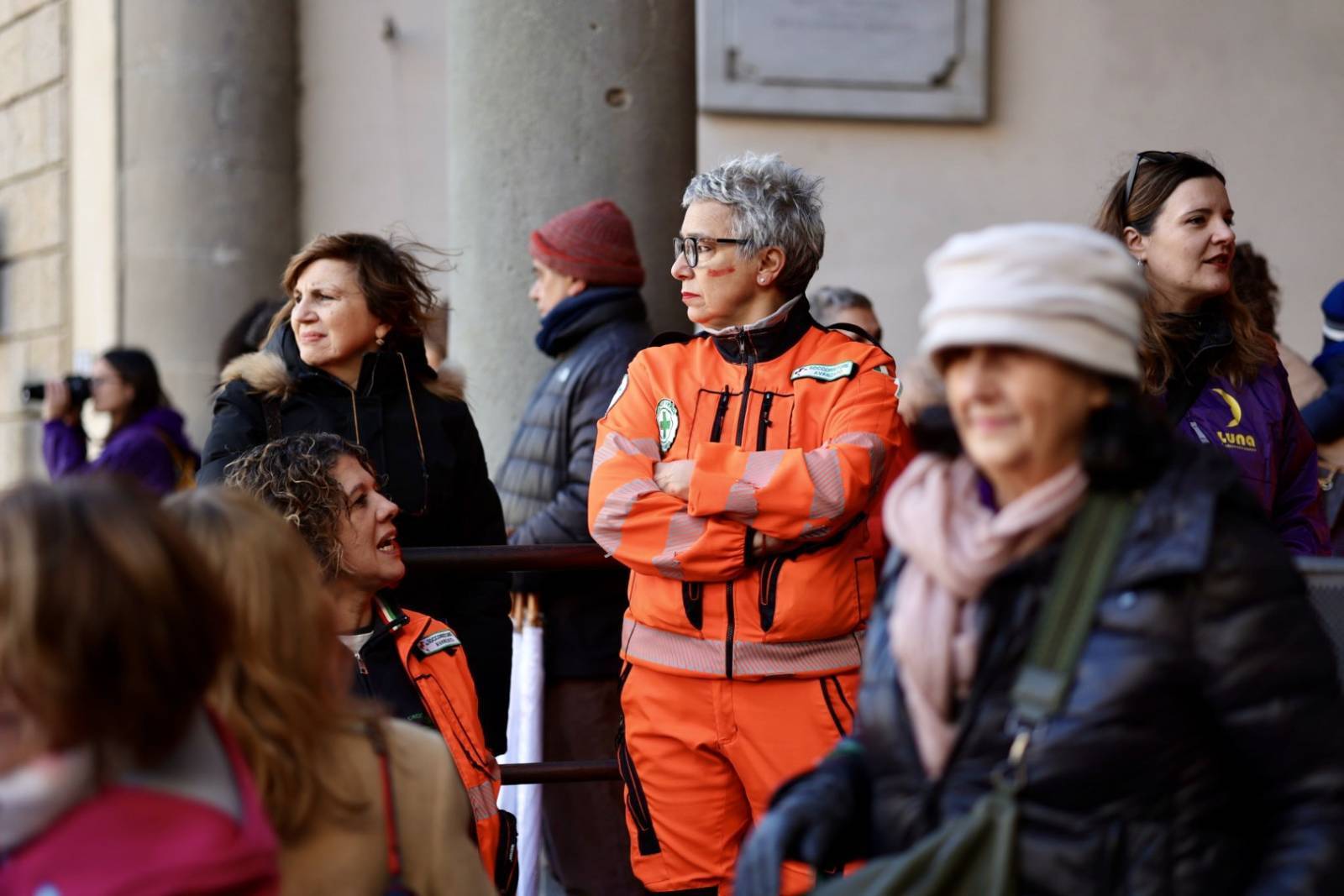 Sul palco è salito poi il presidente della Croce Verde di Lucca Danielle Borella che, nel silenzio della piazza, ha ricordato, uno ad uno, tutti i femminicidi avvenuti dal 2010 fino ad oggi nella nostra provincia. Borella ha successivamente chiesto un minuto di rumore “assordante” a cui è seguito un altro minuto di raccoglimento, il primo per richiamare l’attenzione sulla problematica della violenza sulle donne ed il secondo in memoria delle vittime.