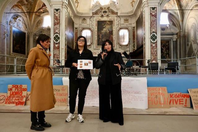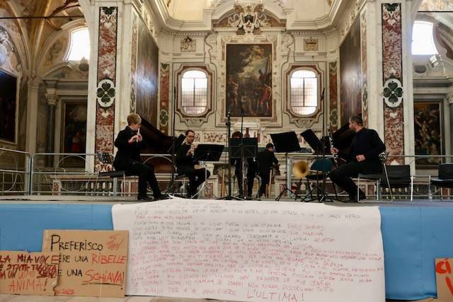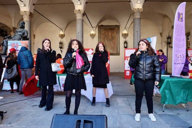 La manifestazione è proseguita con la presentazione e l’esibizione delle ragazze della scuola di musica “H-Demia” che hanno scritto e messo in musica il brano “Tempesta” basandosi sulle parole di donne che si trovano “in casa protetta ad indirizzo segreto”.