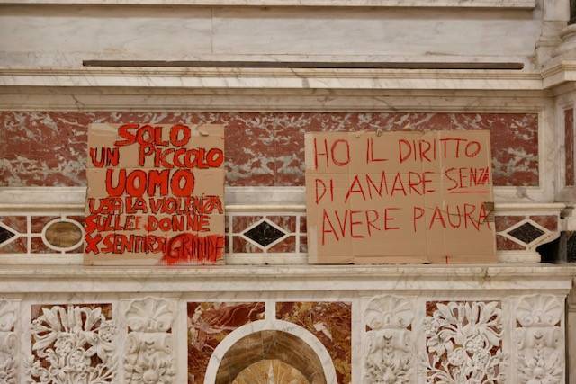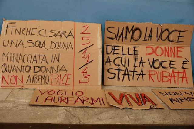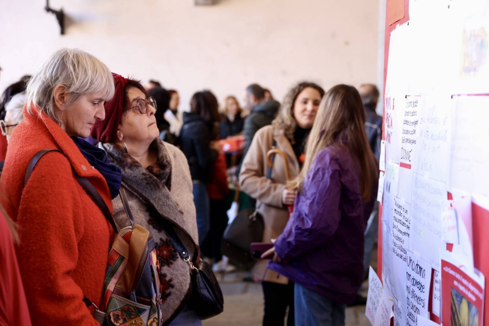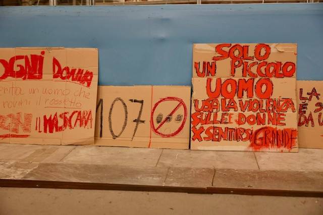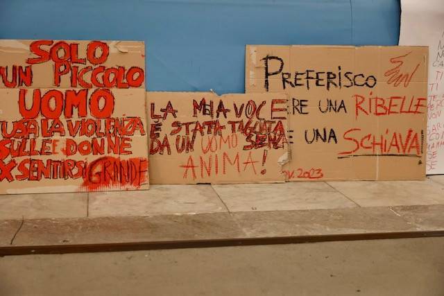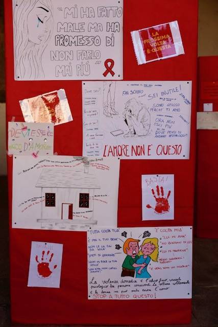 La manifestazione, partecipatissima, è iniziata attorno alle 10 quando sono state attaccate su dei pannelli frasi sulla tematica della violenza sulle donne.