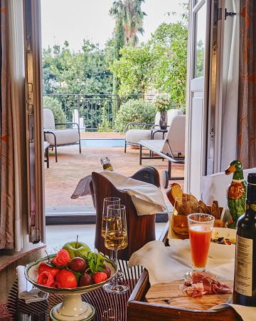 Il portoncino che si apre su piazza Crispi è la via d’accesso al Paradis, boutique hotel quattro stelle, undici camere e una suite disposte tra il primo e il secondo piano dell’antico palazzo. Le camere, offerte con la sola formula del pernottamento (la colazione è possibile dalle 7,30h alle 12h nel lounge-bar Ariodante, al prezzo di 15 euro), sono tutte diverse, pur con alcuni fil-rouge che le accomunano: gli armadi, tutti a vista tranne la suite, i tendaggi, e qualche dettaglio che è comune a tutte ma in tutte diverso, come le opere d’arte che vi sono custodite e gli arazzi realizzati da Kahil Minka, artista marocchino che a cento chilometri da Marrakesh dà lavoro e futuro a donne vittime di violenze. Oltre il portoncino, si sale per una bella scala incorniciata in una pregevole ringhiera di ferro battuto realizzata a mano da un fabbro locale (e che fa da cornice anche al parapetto del piano superiore) verso la reception dell’hotel, cuore pulsante dall’aria semplice e familiare, in mezzo a scaffali che ripropongono i prodotti del Paradis Agricole, l’agro foresteria che si trova a due chilometri e mezzo in direzione del mare, e da dove provengono tutti i prodotti proposti per la prima colazione. Corridoi tinteggiati in colori di tenue tinta pastello sui toni del tortora, del grigio soffuso e del beige conducono alle stanze, tutte definite da nomi singolari: al primo piano nomi di città toscane, al secondo piano nomi di famosi filosofi: sei standard classiche di 23 metri quadrati, cinque superior di 33-35 metri quadrati, una suite da 55 metri quadrati con un proprio caminetto che può essere acceso secondo le esigenze di chi vi risiede. In più, tre camere affacciano sul giardino-aranceto del ristorante, e hanno a disposizione un piccolo terrazzo privato e arredato, disegnato dal paesaggista francese Jean Mus, lo stesso che ha realizzato gli esterni del Paradis Agricole. Tutte le camere sono dotate di bagni privati arredati in marmo bianco di Carrara, in genere con lo spazio servizi separato dall’area doccia-lavabo. Particolare significativo, le stanze non hanno telefono: la comunicazione avviene via tablet, con il bar e con la reception, che a sua volta può comunicare con Paradis Agricole, di cui la reception stessa gestisce anche tutte le prenotazioni e i servizi richiesti alla struttura di Pietrasanta.