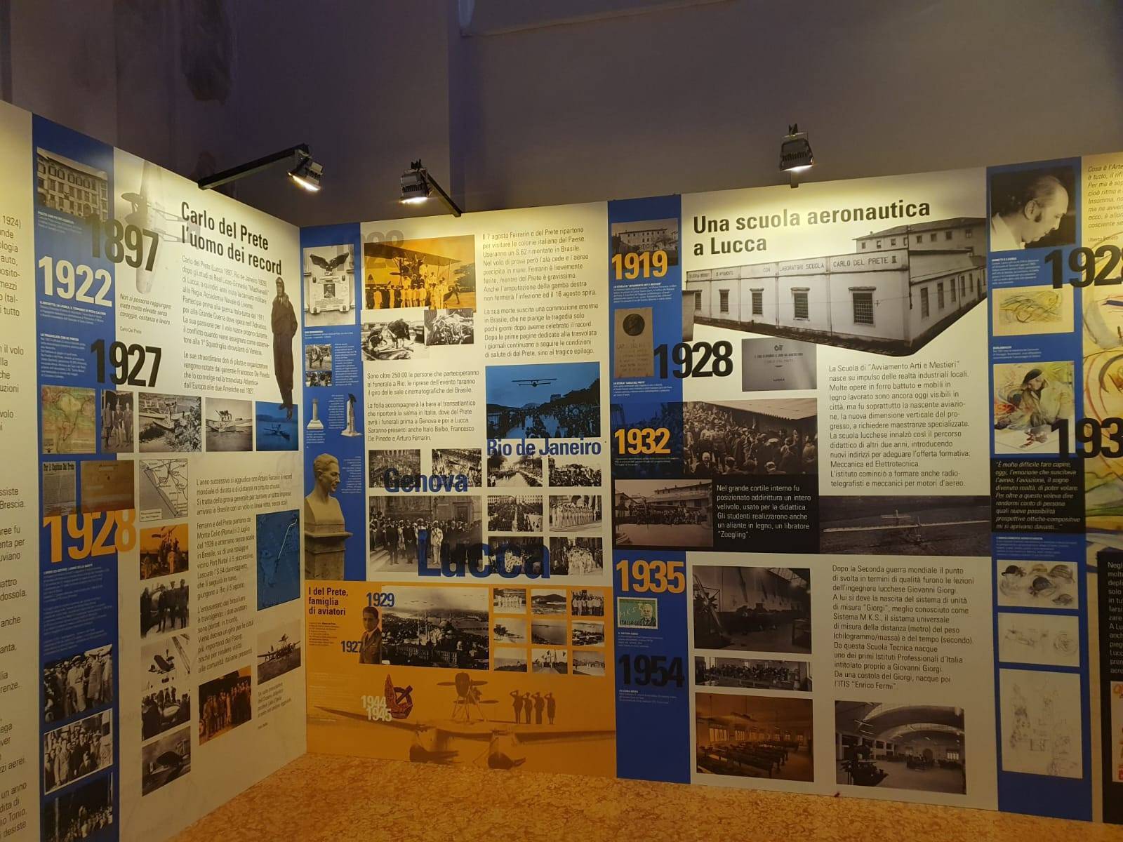 Una mostra dunque che, oltre a ripercorrere con pannelli e filmati le tappe fondamentali della storia dell'aeronautica militare, ne sottolinea lo stretto rapporto con la città di Lucca, peraltro con cimeli eccezionalmente messi in mostra per l'occasione, dalla tuta di volo di Carlo Del Prete ad una copia del libro Per la più grande Italia con la dedica originale di Gabriele D'Annunzio al pilota lucchese Giovan Battista Pittaluga.