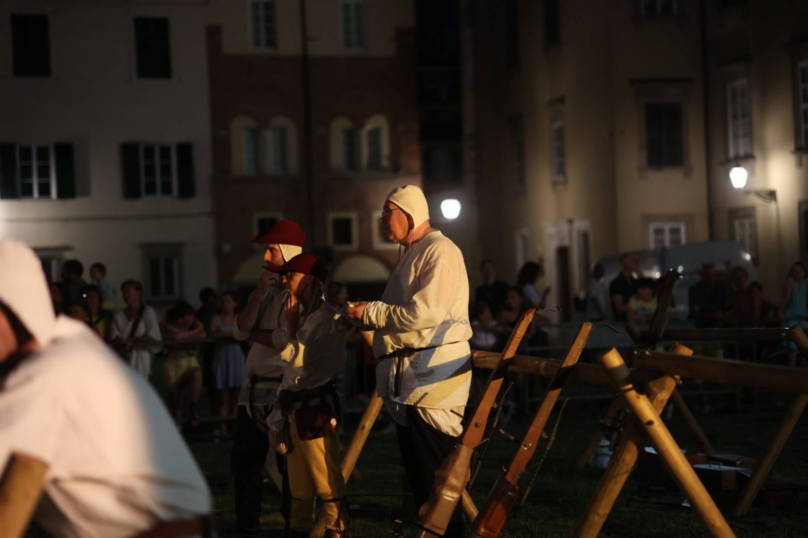 Prima della gara hanno sfilato sul piazzale a fianco della Cattedrale di San Martino i numerosi membri delle associazioni storiche lucchesi, catturando l'attenzione del pubblico attraverso le storiche vesti dei nobili e delle autorità cittadine, seguiti immediatamente dai balestrieri delle due associazioni in gara e infine dai musici e dagli sbandieratori della Contrada di Sant'Anna. Tra le autorità presenti, inoltre, il sindaco Mario Pardini, l'assessore alla cultura Mia Pisano, il consigliere dedicato alle tradizioni storiche Lorenzo del Barga ed il vescovo Paolo Giulietti.