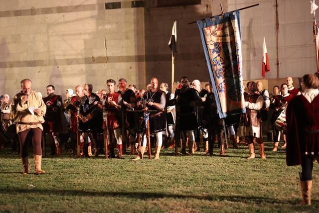 Ad osservare i 61 balestrieri ripercorrere le orme della storia, posando la pesante balestra sui bancacci e sparando i dardi puntando al corniolo - o brocca che dir si voglia - per vincere la gara, una folla decisamente ampia e soprattutto variegata. Tra gli spalti organizzati ad hoc per l'evento tantissimi tra giovani e giovanissimi, rimasti per ore con gli occhi attaccati ai colorati costumi medievali delle comparse e agli schiocci delle potenti balestre.