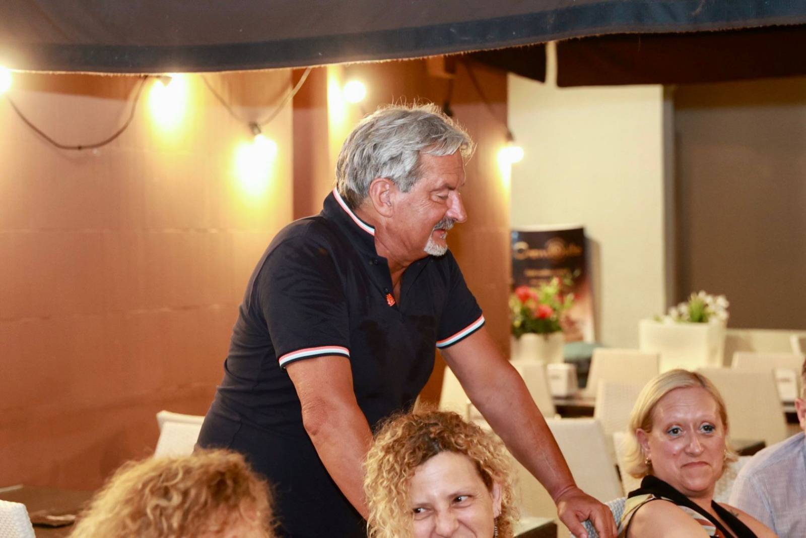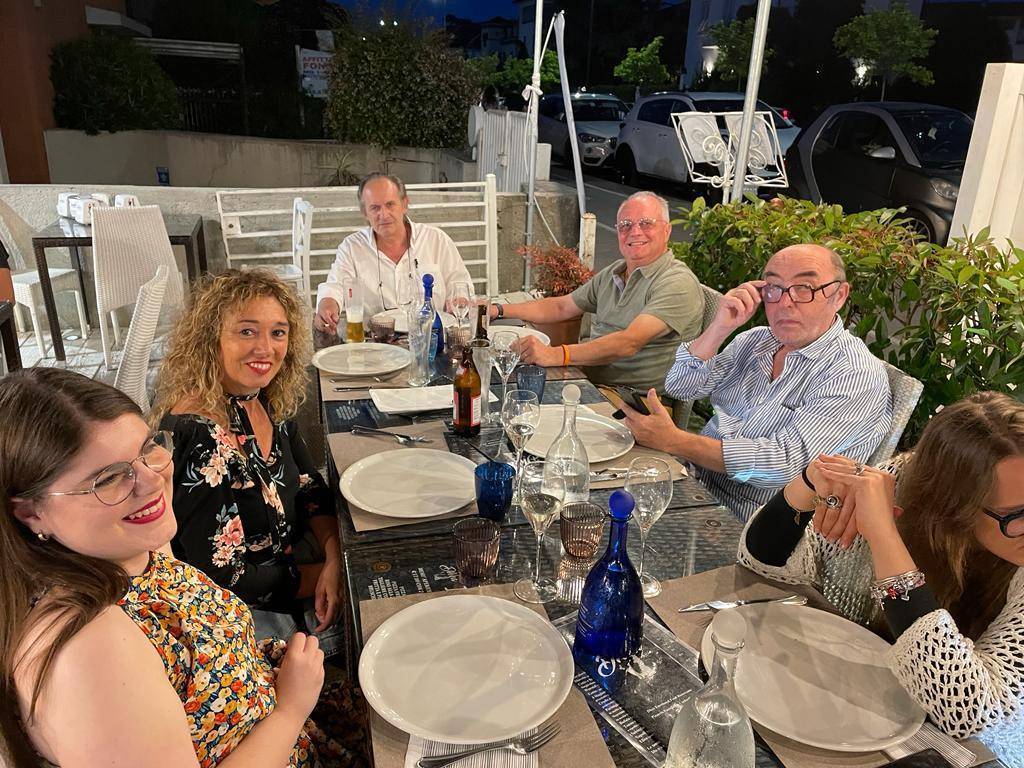 Arrivano sul tavolo anche i dolci, a non volerci far mancare niente. Sabina Alberti è una padrona di casa davvero ai limiti della perfezione. Non si arrabbia mai e mai perde la pazienza anche se ne avrebbe i motivi. Beata lei. Salutiamo lo staff e togliamo, più avanti, le tende. Arrivederci all'autunno nella speranza che presto si possa mettere su una cena con musica per celebrare le Gazzette e senza dimenticare tutti coloro, i nostri inserzionisti pubblicitari, che hanno reso possibile questa impresa.
