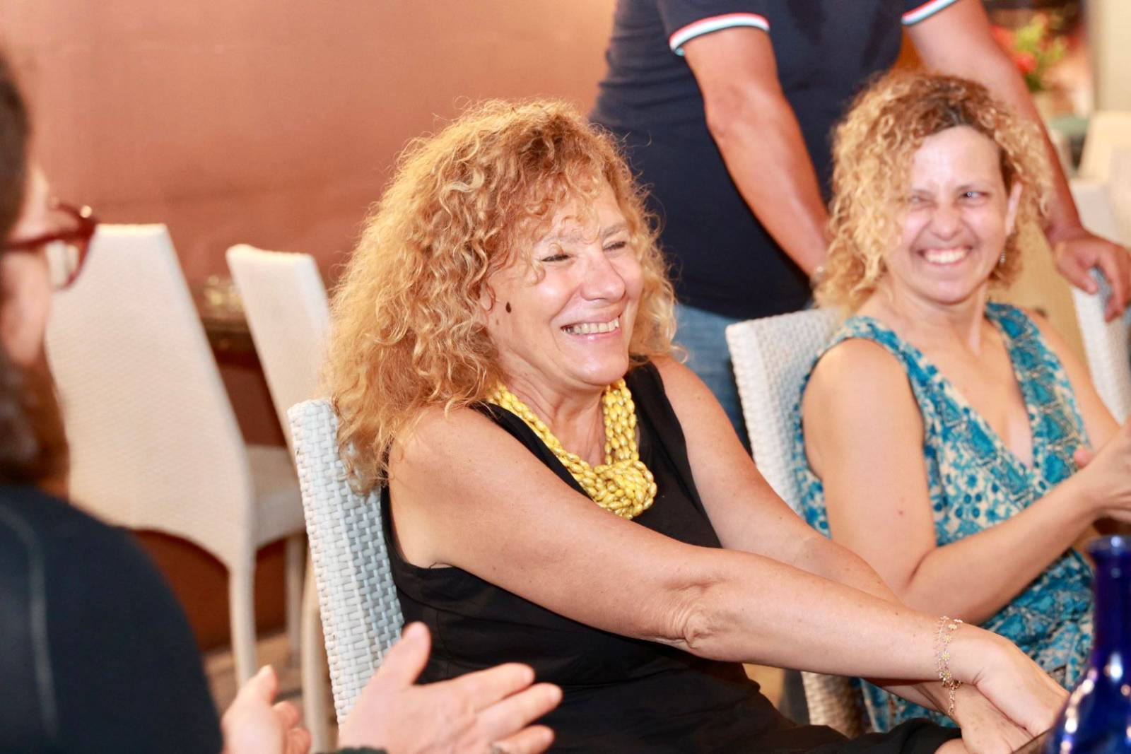 Accanto a lei Francesca Sargenti, appena nominata responsabile della comunicazione per la Camera di Commercio area vasta. Ce la presentò, tanti anni fa, Marcello Petrozziello che approfittiamo per salutare ammesso, ma ne dubitiamo, che possa leggere queste righe. Francesca è una giornalista puntuale, precisa, attenta. Le piace la cultura e non soltanto. Anche la buona cucina sia quella degli altri, sia la sua. A proposito, ottime marmellate fatte in casa che, regolarmente, le rubiamo.