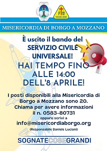 Gli uffici della Misericordia (0583/8073214 Daniele) sono a disposizione per fornire informazioni e per supportare i giovani nella compilazione della domanda.
