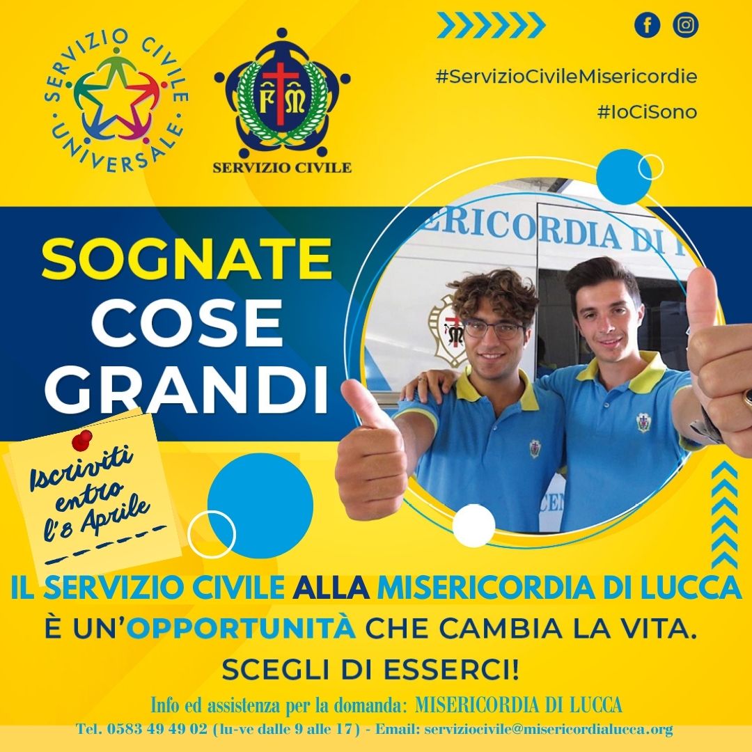 Il Dipartimento per le politiche giovanili e il Servizio Civile Universale ha pubblicato il Bando 2025 per la selezione di n.65.964 Operatori Volontari da impiegare in progetti di Servizio Civile Universale in italia. I progetti finanziati ai quali la Misericordia di Lucca ha partecipato prevedono l'impiego, nelle attività istituzionali, di totali 24 giovani.