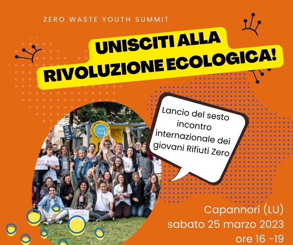 Sabato 25 marzo, presso il Parco Scientifico di Segromigno in Monte a Capannori (LU), si svolgerà l'incontro di lancio del Summit Mondiale dei Giovani Rifiuti Zero (Zero Waste Youth Summit) che avverrà proprio a Capannori nella terza settimana di novembre per iniziativa del comitato internazionale “WE ARE” con la collaborazione di Zero Waste Italy e del Centro Ricerca Rifiuti Zero di Capannori.