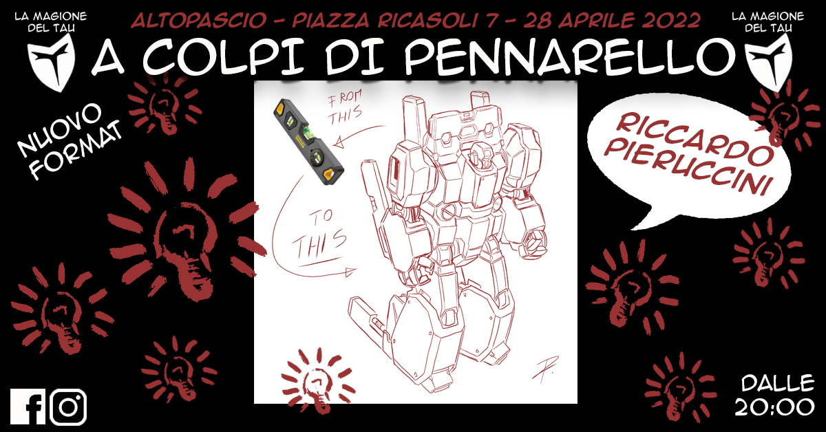 Questa volta l'ospite del nuovo format sarà Riccardo "Ruggine" Pieruccini, insieme ai suoi robottoni, con il progetto Robot Madness di albi-tribute sui robot dell'animazione giapponese. Sposando la filosofia de La Magione del Tau del legame con il territorio, Pieruccini disegnerà, durante la serata, i robot ad Altopascio: potremo così vedere Gundam sul campanile, Daitarn 3 nella storica piazza Ricasoli, o Ufo Robot Goldrake per le vie del centro, e così, chi parteciperà alla serata potrà, se lo desidera, portarsi a casa un disegno autografato o più semplicemente, assistere alla realizzazione.