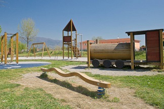 Il progetto prevede la ridefinizione della parte a nord del campo sportivo, con la sostituzione del campo da allenamento esistente disposto in direzione nord-sud, con uno disposto in direzione est-ovest, così da liberare una porzione di territorio che sarà destinata all’espansione del parco verso i “laghetti”, la riqualificazione delle strutture esistenti adibite a magazzini, attualmente in cattivo stato di manutenzione, la realizzazione di un chiosco- caffetteria a servizio sia del campo sportivo che degli utenti del parco. Sarà realizzata un’ area pavimentata con nuovi giochi e un’ area fitness e sostituita l’ illuminazione del parco.