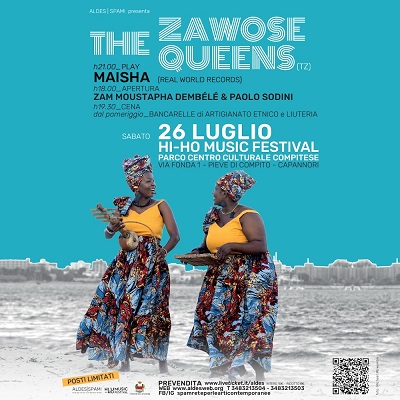 La serata si apre alle 18 con Zam Moustapha Dembélé, eccezionale polistrumentista maliano, griot di etnia Bobò, accompagnato dalla chitarra junk blues di Paolo Sodini e con una piccola mostra mercato di liuteria e artigianato etnico di qualità. Dalle 19,30, per chi lo desidera, c'è la cena gourmet con prodotti a chilometri zero allo spazio food del festival. Alle 21 inizia il concerto delle Zawose Queens. In chiusura di serata il Dance Club a cura di SPAM!