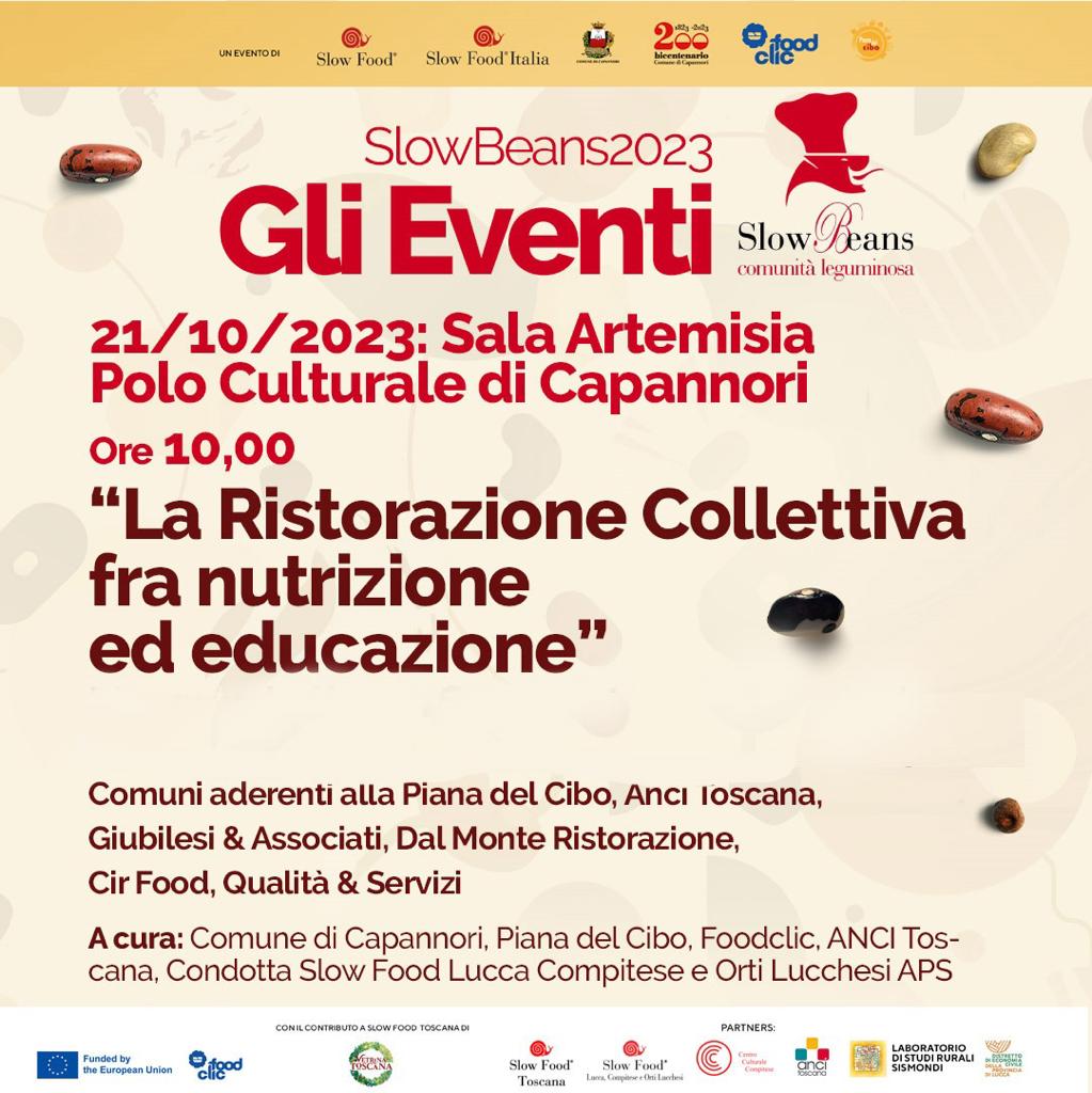 Prosegue con altri appuntamenti "Aspettando Slow Beans", la manifestazione che fino al 27 ottobre fa da prologo a 'Slow Beans 2023-Meeting della Comunità Leguminosa' che si svolgerà il 28 e 29 ottobre a Sant'Andrea e Pieve di Compito nell'ambito della Mostra autunnale della Camelia. L'iniziativa incentrata sui legumi e sul buon cibo locale, è promossa da Slow Food Italia, Slow Food Toscana, Piana del Cibo, Comune di Capannori, Centro Culturale Compitese, Foodclic, ANCI Toscana, Condotta Slow Food Lucca Compitese e Orti Lucchesi APS, Distretto di Economia Civile Provincia di Lucca, Vetrina Toscana.