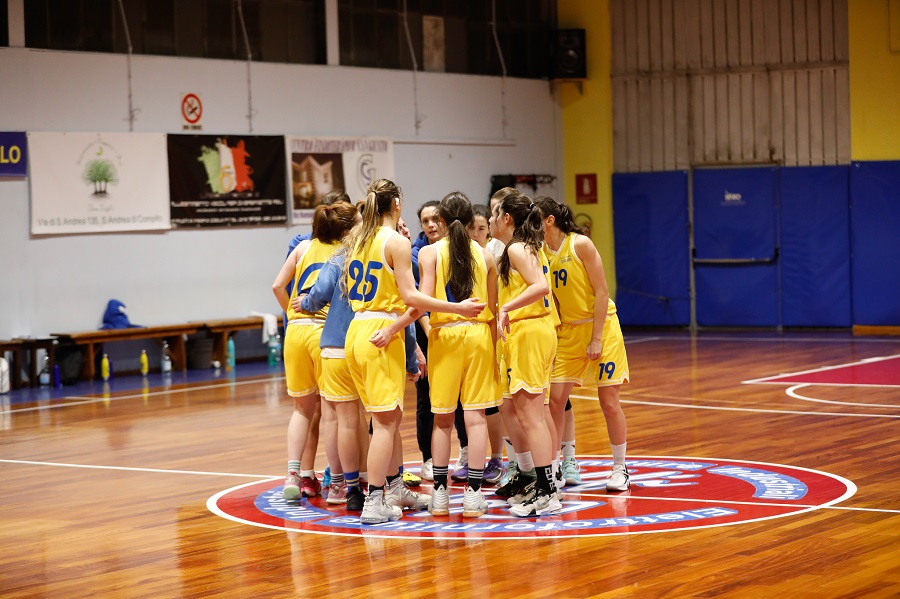 Belfiori è costretta ad uscire a 4 minuti dal termine del periodo, poi rientrata nel successivo, per un problema alla spalla, ma è Giusti adesso a fare voce grossa sotto canestro ed a frenare la foga delle ospiti.
