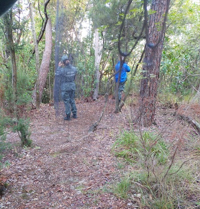 L'attenzione degli agenti era stata richiamata da un canto di tordo proveniente da un punto ben localizzato sulla cima di un piccolo colle, dove gli agenti dopo essersi avvicinati con circospezione, rinvenivano una tesa di reti per uccellagione estesa per circa 30 metri e alta due metri e mezzo. Un vero e proprio impianto di cattura con pali di sostegno e tiranti che sorreggevano le reti i cosiddetti "roccoli" e 3 gabbie con all'interno altrettanti uccelli della specie tordo, utilizzati come richiami.