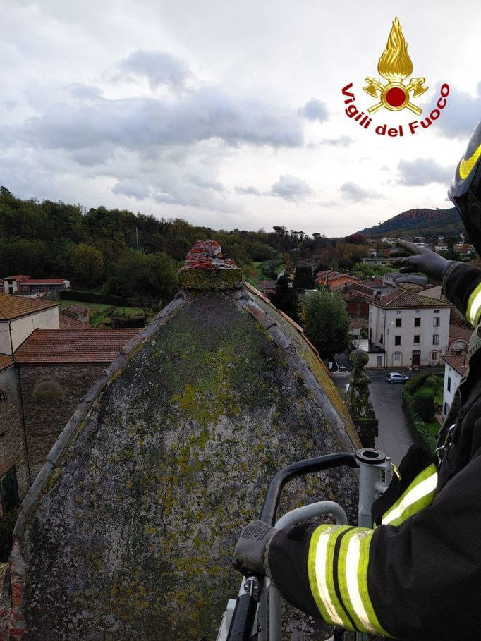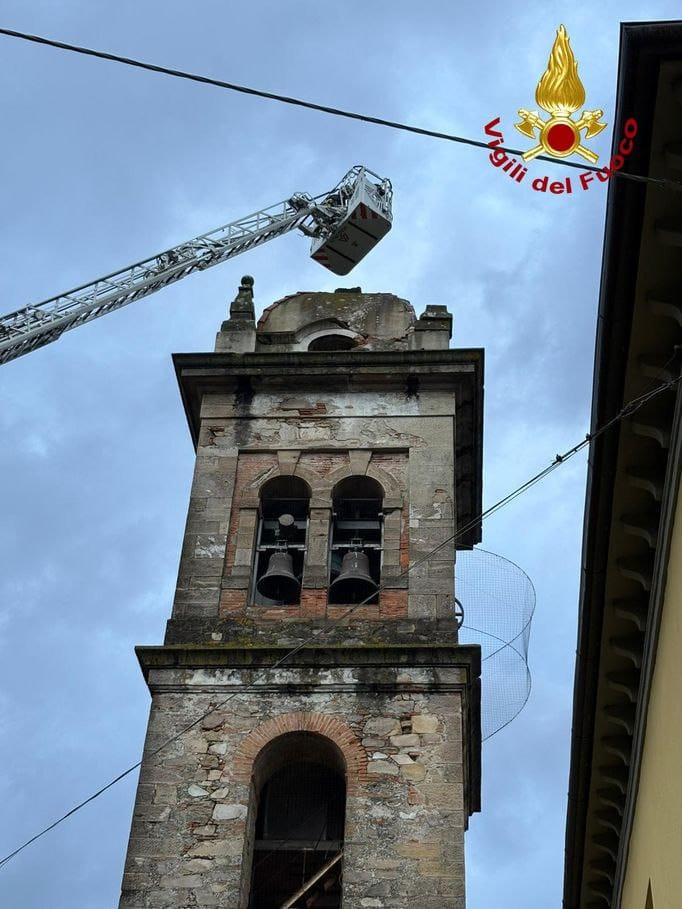 Alle 7.30 una squadra di vigili del fuoco del comando di Lucca si è recata alla chiesa San Leonardo in Treponzio per verificare le condizioni del campanile colpito da un fulmine. Intervento tutt'ora in corso.