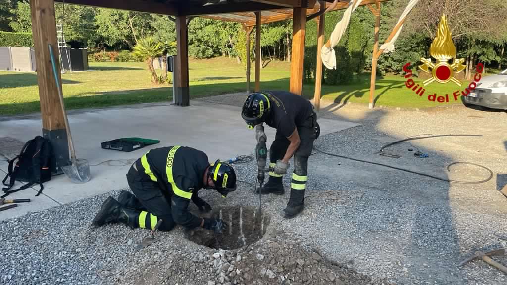 Una squadra di vigili del fuoco della sede centrale di via Barbantini è intervenuta nel comune di Capannori in località Segromigno in Piano per il recupero di un cane che si è introdotto all'interno di una tubazione in cemento posta sotto il terreno e utilizzata per lo scolo delle acque di un fossato, rimanendo bloccato. Il personale ha individuato l'animale tramite l'utilizzo della sonda endoscopica e utilizzando un martello demolitore è riuscito a creare un varco che ha permesso l'estrazione della bestia.