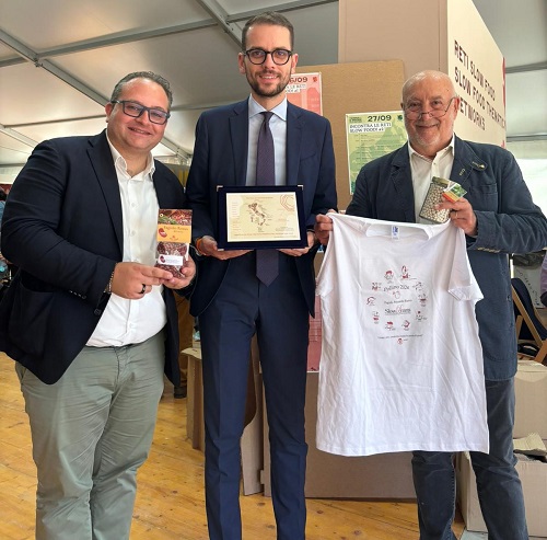 A ‘Terra Madre’ si è anche celebrato il passaggio del ‘testimone’ da Capannori a Mormanno nel Parco del Pollino in Calabria per la manifestazione dedicata ai Legumi ‘Slow Beans’ che si svolgerà il prossimo dicembre al quale, tra gli altri, hanno partecipato, Giorgio Dalsasso, in rappresentanza della Piana del Cibo e il sindaco di Mormanno, Paolo Pappaterra. La manifestazione da Capannori, dove si é svolta nel 2023, si sposta quindi in Calabria per portare in giro i temi della Rete Slow Beans. Alla presenza dei produttori della Rete c’è stato il passaggio del testimone rappresentato da una targa che raffigura tutte le tappe della manifestazione e l’ultimo tratto da percorrere da Capannori a Mormanni. E’ seguito uno scambio di legumi tipici dei rispettivi territori.
