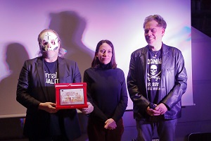 Un appuntamento che, come da prassi per il Festival, ha fatto registrare il tutto esaurito e che è stato particolarmente dinamico nello svolgimento. Durante la prima parte dell’evento Toffolo, con il volto coperto dalla maschera-teschio che contraddistingue i componenti dei Tre Allegri Ragazzi Morti, è stato infatti interrotto a sorpresa dall’arrivo di una piccola torta con candelina per festeggiare il suo compleanno che cadeva proprio il 17 gennaio.