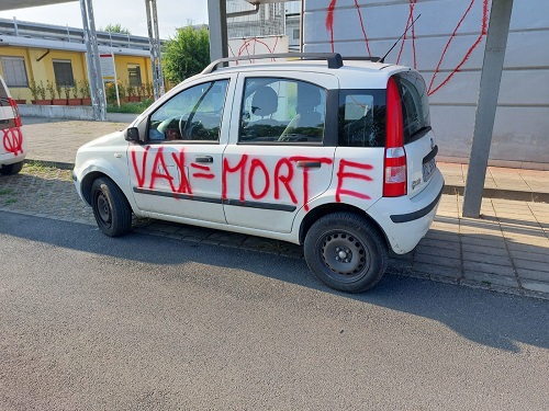 Scritte ‘No Vax’ al Centro Sanitario di Capannori in Piazza Aldo Moro. Frasi offensive e intimidatorie sono state apposte nella notte sui muri e sulle porte del distretto e del dipartimento della prevenzione e sulle auto di servizio parcheggiate nel perimetro della struttura.