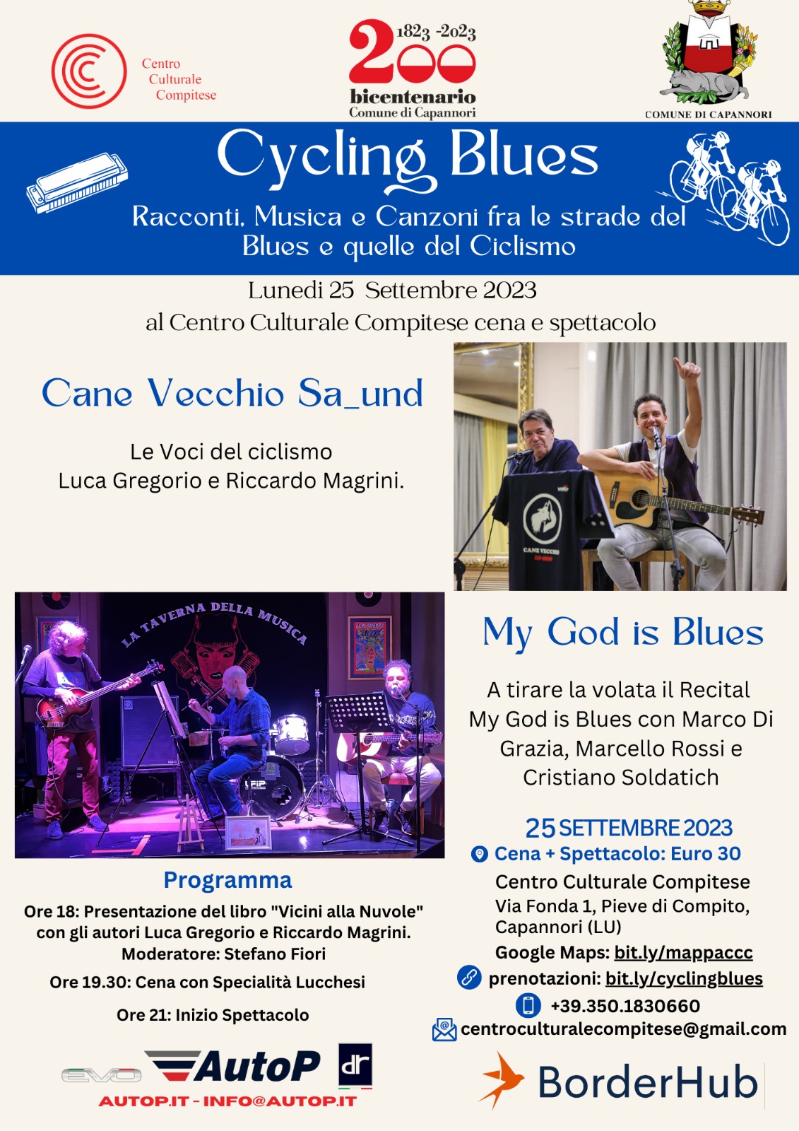 Cycling Blues: le voci del ciclismo Luca Gregorio e Riccardo Magrini nel Compitese insieme a "My God is Blues"