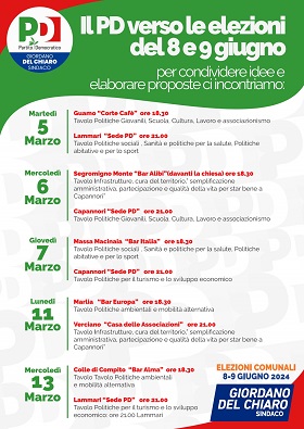 Da martedì 5 marzo il Pd di Capannori incontra sul territorio iscritti e simpatizzanti