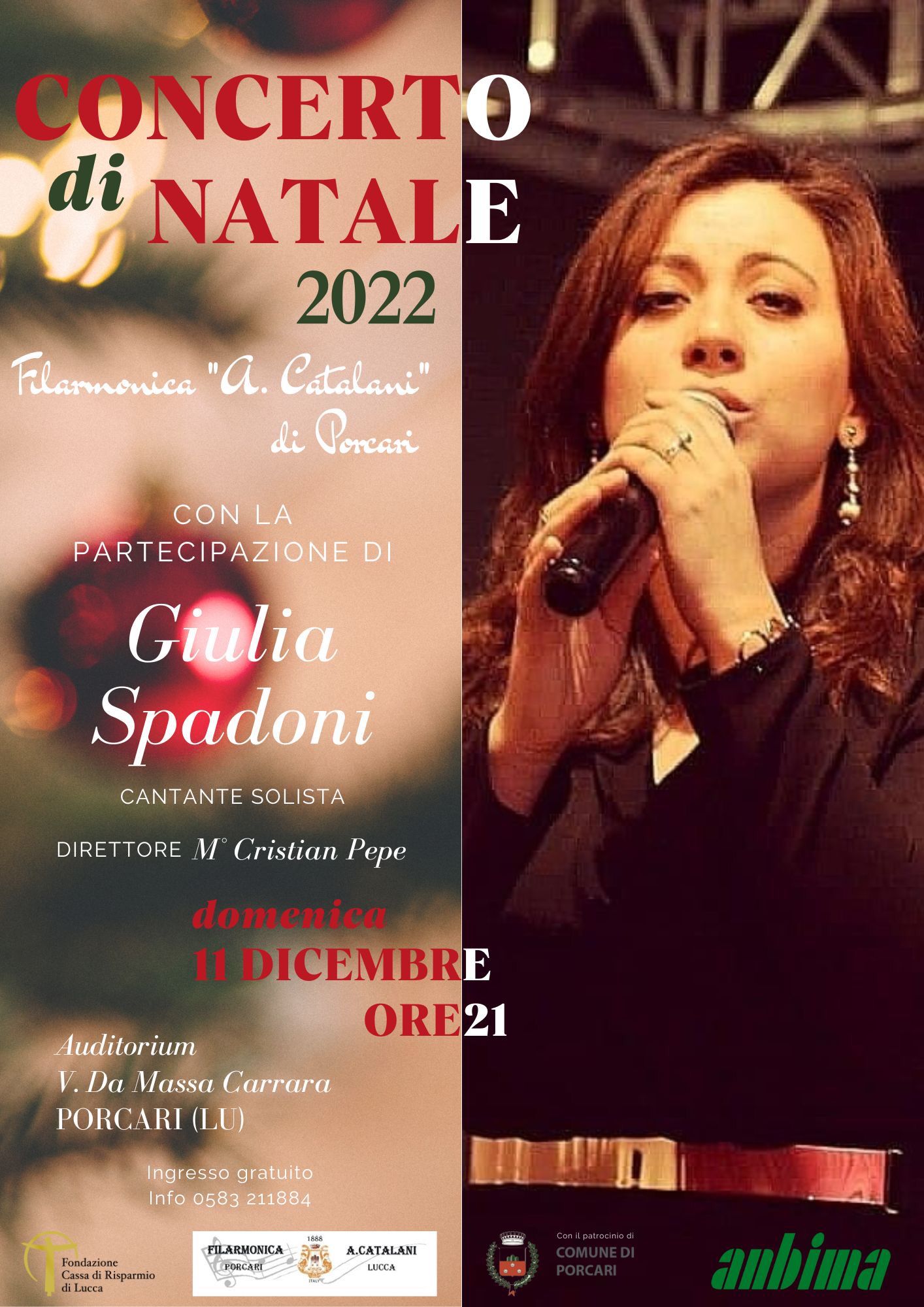 La cantante Giulia Spadoni nasce e cresce a Lucca, frequentando le scuole proprio a Porcari, dove vivono alcuni membri della sua famiglia. Figlia di musicisti professionisti si avvicina alla musica da giovanissima mostrando interesse ed un amore innato per il canto. Trasferitasi a Roma si esibisce come soprano solista con alcuni dei più importanti gruppi bandistici delle Forze dell’Ordine Italiane fra cui la Fanfara della scuola dei Marescialli e Brigadieri di Firenze e la Fanfara a cavallo della Polizia di Stato di Roma. Giulia Spadoni vanta di essersi esibita anche a casa del maestro Andrea Bocelli nel corso di una festa privata e la partecipazione al concerto omaggio in onore del maestro Ennio Moricone.
