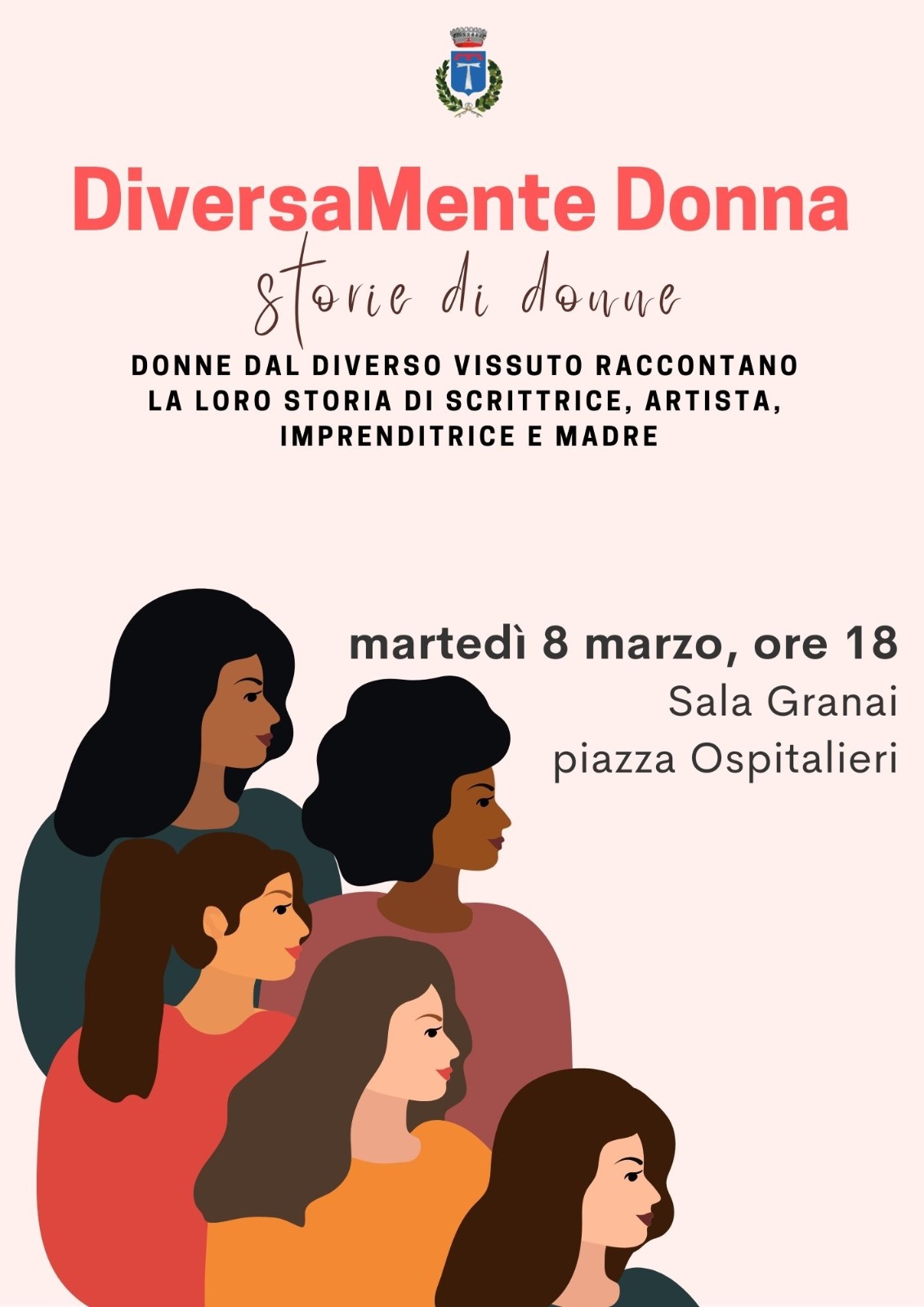 Giornata internazionale per i diritti della donna: ad Altopascio se ne parla con "DiversaMente Donna - Storie di donne". Domani, martedì 8 marzo, alle 18, nella Sala Granai di piazza Ospitalieri, un appuntamento narrato che metterà a confronto le storie di quattro donne dal diverso vissuto. Una scrittrice, un'artista, un'imprenditrice e una madre si incontrano per raccontare e parlare della loro vita, della propria visione sull'oggi, sul futuro da costruire e sul ruolo delle donne.