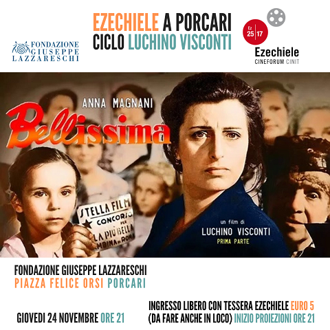 IL CINEFORUM EZECHIELE arriva a Porcari. Iniziano giovedì 24 novembre nel Palazzo di Vetro della Fondazione Giuseppe Lazzareschi, le proiezioni settimanali di grandi film italiani d’autore, in collaborazione con il Cineforum Ezechiele di Lucca.
