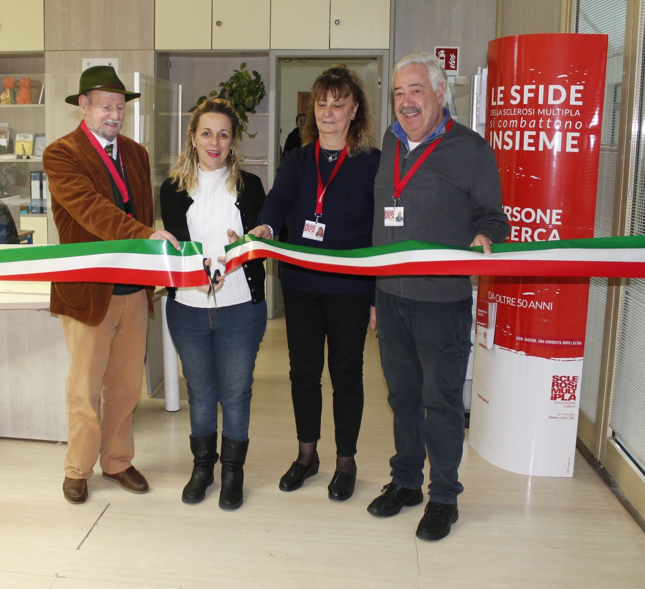 E’ stato inaugurato ieri (lunedì) all’interno dell’Urp del Comune un nuovo sportello gestito da Aism (Associazione Italiana Sclerosi Multipla) Lucca. Un nuovo servizio di informazione ed accoglienza per supportare le persone affette da sclerosi multipla e i loro familiari. Il nuovo servizio gestito dai volontari dell’associazione sarà aperto al pubblico il secondo lunedì di ogni mese, dalle ore 9.30 alle ore 12.30 e permetterà alle persone affette da questa patologia di avere immediato accesso alle risorse di AISM (sezione, osservatorio nazionale e numero verde) in termini di orientamento, supporto e affiancamento, su diverse tematiche, relative alla quotidianità con la sclerosi multipla, rendendo sempre più persone consapevoli sui propri diritti, possibilità e funzionamento della rete dei servizi. Presenti al taglio del nastro l’assessora ai servizi al cittadino e ai diritti, Serena Frediani, Andrea Cupini presidente di Aism Lucca e Claudio Landi consigliere del coordinamento provinciale dell’associazione.