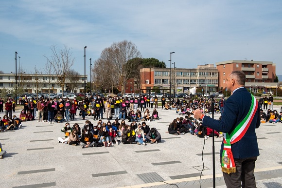 Circa 600 studenti del liceo scientifico 'Majorana' di Capannori, stamani (lunedì) hanno partecipato in piazza Aldo Moro, all'iniziativa 'La memoria rende liberi' con cui hanno reso omaggio alle vittime di mafia. L'evento è stato promosso dal liceo 'Majorana' e dal presidio Libera Lucca 'Giuliano Guazzelli' in collaborazione con il Comune di Capannori in occasione della '27a Giornata della Memoria e dell'impegno in ricordo delle vittime innocenti di mafia' promossa a livello nazionale da Libera. Gli studenti del liceo hanno reso testimonianza attraverso la loro voce ai bambini, alle donne e agli uomini che hanno perso la propria vita per mano della violenza mafiosa. Ciascuno di loro esibiva un cartello con il nome di una vittima di mafia, mentre 30 studenti, uno per ciascuna classe presente, ha letto il nome di una vittima ricordando la sua storia. In piazza insieme agli studenti erano presenti il sindaco Luca Menesini, l'assessore alle politiche educative Francesco Cecchetti, il dirigente scolastico del liceo Majorana Luigi Lippi, le docenti Catiuscia Giacomelli ed Elisa Greco, che hanno coordinato l'iniziativa anche in rappresentanza dell'associazione Libera Lucca di cui è referente Laura Soletti, la comandante della polizia municipale Debora Arrighi, il comandante della stazione dei carabinieri di Capannori, Andrea Marsili.