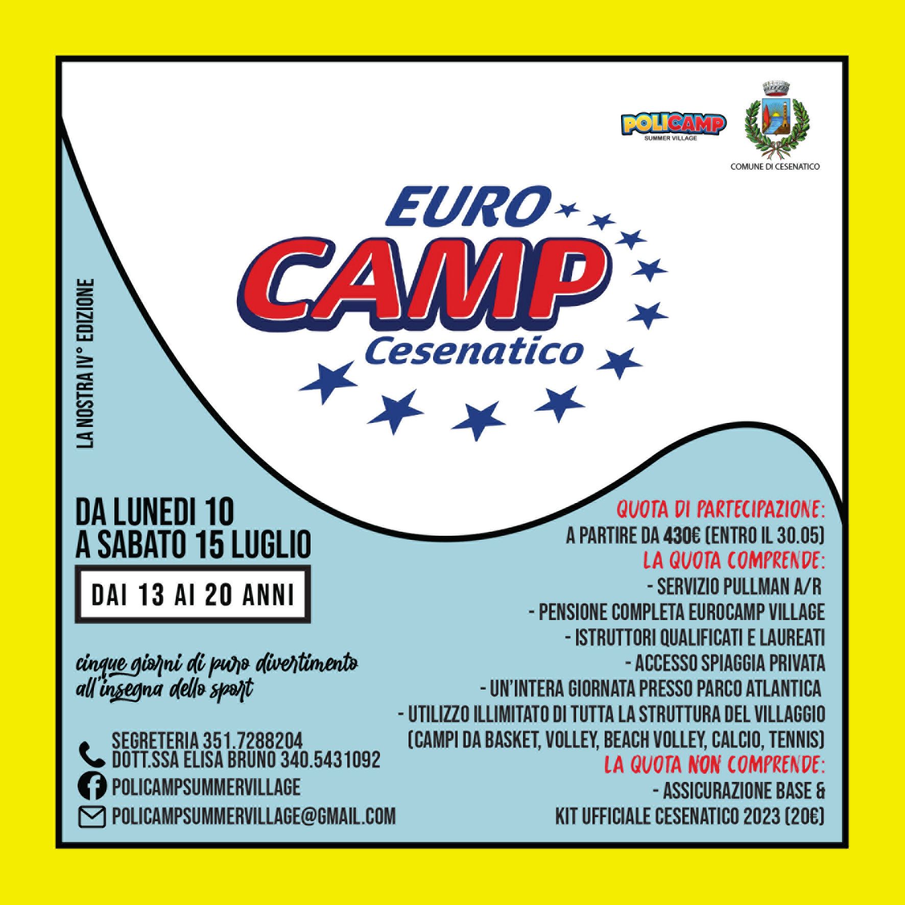 Per il quarto anno consecutivo la Polisportiva Capannori sarà presente all'Eurocamp di Cesenatico. Nell'accordo raggiunto tra le due società, la Polisportiva diventa anche il punto di riferimento per la Piana di Lucca e i dintorni per quanto riguarda la settimana del campo estivo da lunedì 10 luglio a sabato 15 Luglio, rivolto a tutti i ragazzi dai 13 ai 20 anni.
