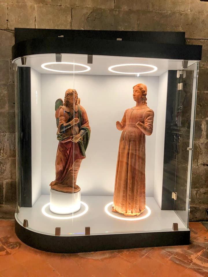 L’attesa è stata lunga e carica di preoccupazioni, ostacoli. Molti imprevisti hanno fatto sì che l’Angelo Annunciante e successivamente la Madonna del Parto, soggiornassero altrove, custoditi con la massima cura, per essere restaurati, apprezzati e valorizzati. Un atto dovuto nei confronti di opere uniche ancora poco conosciute: l’Angelo, attribuito alla bottega di Andrea del Verrocchio ma anche alla mano di Leonardo da Vinci dallo storico dell’Arte Carlo Pedretti, è un’opera indubbiamente enigmatica, che suscita in chi la osserva una particolare attrattiva, un’aura mistica che solo le grandi opere d’arte riescono a trasmettere, adesso torna a San Gennaro, nella casa che la ospita da sempre, in una nuova collocazione, all’interno di una teca assieme alla Madonna del Parto, per essere entrambe apprezzate per la loro bellezza ed armonia in un luogo sicuro e protetto.