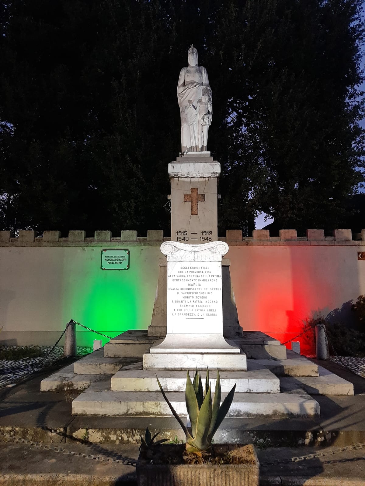 L'associazione nazionale 'Combattenti e Reduci di Marlia' ha illuminato con i colori della bandiera italiana il Monumento ai Caduti di Marlia in occasione dei 100 anni dalla sua costruzione e in vista del 25 aprile. L'illuminazione, di tipo permanente, è stata realizzata grazie alla generosità dei 160 soci dell'associazione presieduta dal Cavaliere Giovanni Renna (vice presidente Lamberto Serafini) e di alcuni cittadini. L'associazione 'Combattenti e reduci', da alcuni anni, grazie ad un accordo con il Comune, si prende cura della manutenzione del monumento e del viale della Rimembranza. L'amministrazione comunale ringrazia l'associazione per il lavoro che con impegno e passione porta avanti per mantenere viva la memoria.