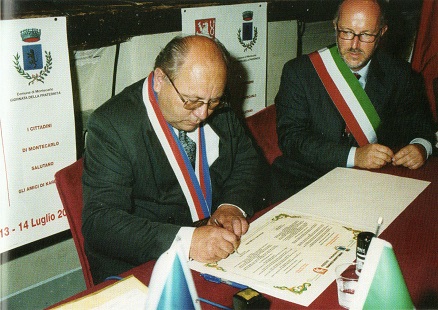 Nella foto: 13 luglio 2002 l'allora sindaco di Montecarlo Giuseppe Pieretti e il sindaco di Karltšejn (Repubblica Ceca) Miroslav Ureš, firmano l'atto del gemellaggio