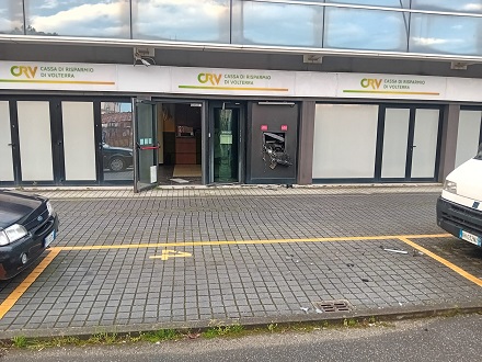 Questa notte intorno alle 4.30, a Capannori in via della Madonnina, un gruppo composto da almeno due persone con il volto travisato e con indosso abiti scuri, hanno fatto esplodere il bancomat della Cassa di risparmio di Volterra nel tentativo di asportarne il contenuto senza, tuttavia, riuscire nell'intento. La cassaforte, infatti, è rimasta integra. Danni agli uffici. Indagano i carabinieri.