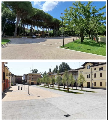 IL PROGETTO. Si prevede la riqualificazione complessiva della piazza: sostituzione della pavimentazione esistente, ridefinizione dell'illuminazione pubblica per valorizzare le caratteristiche della piazza e inserimento di nuovi arredi urbani, tra cui panchine e cestini per i rifiuti. Si prevede inoltre di ampliare l'esistente parcheggio posto a ovest dell'area, con una redistribuzione funzionale dei posti auto. L'obiettivo primario del progetto è creare uno spazio di sosta e vita per i cittadini, attribuendo una nuova identità alla piazza che sarà sempre più un centro di aggregazione per la cittadinanza. Posizionata nel cuore della frazione, la piazza sarà non solo esteticamente più bella, ma anche resa più funzionale e sicura, consolidando così il suo ruolo di punto di incontro e coesione per la comunità.
