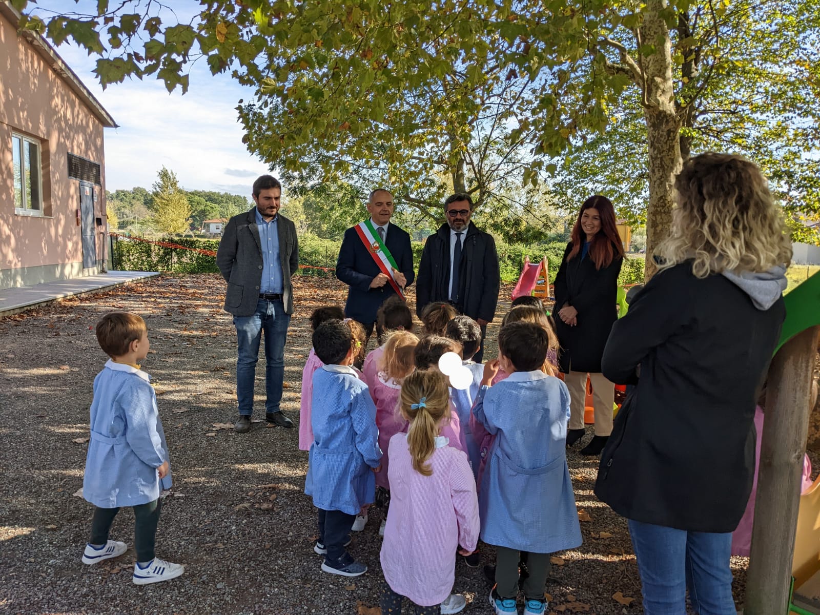 Sì è tenuta oggi presso il giardino della scuola dell'infanzia di Borgonuovo a Gragnano, l'inaugurazione di due nuovi giochi per la didattica all'esterno, una torre scivolo con arrampicata ed un gioco a molla con seggiolino. L'acquisto, che rientra nel più ampio piano di riqualificazione outdoor della scuola, è stato possibile grazie a un contributo di Banco Bpm a favore dell'Istituto Comprensivo di Camigliano, nell'ambito del 'Progetto Scuola' della Banca. Presenti all'iniziativa il sindaco Luca Menesini insieme all'assessore alle politiche educative Francesco Cecchetti, il responsabile Direzione Tirrenica di Banco Bpm Adelmo Lelli e la dirigente scolastica Gioia Giuliani.