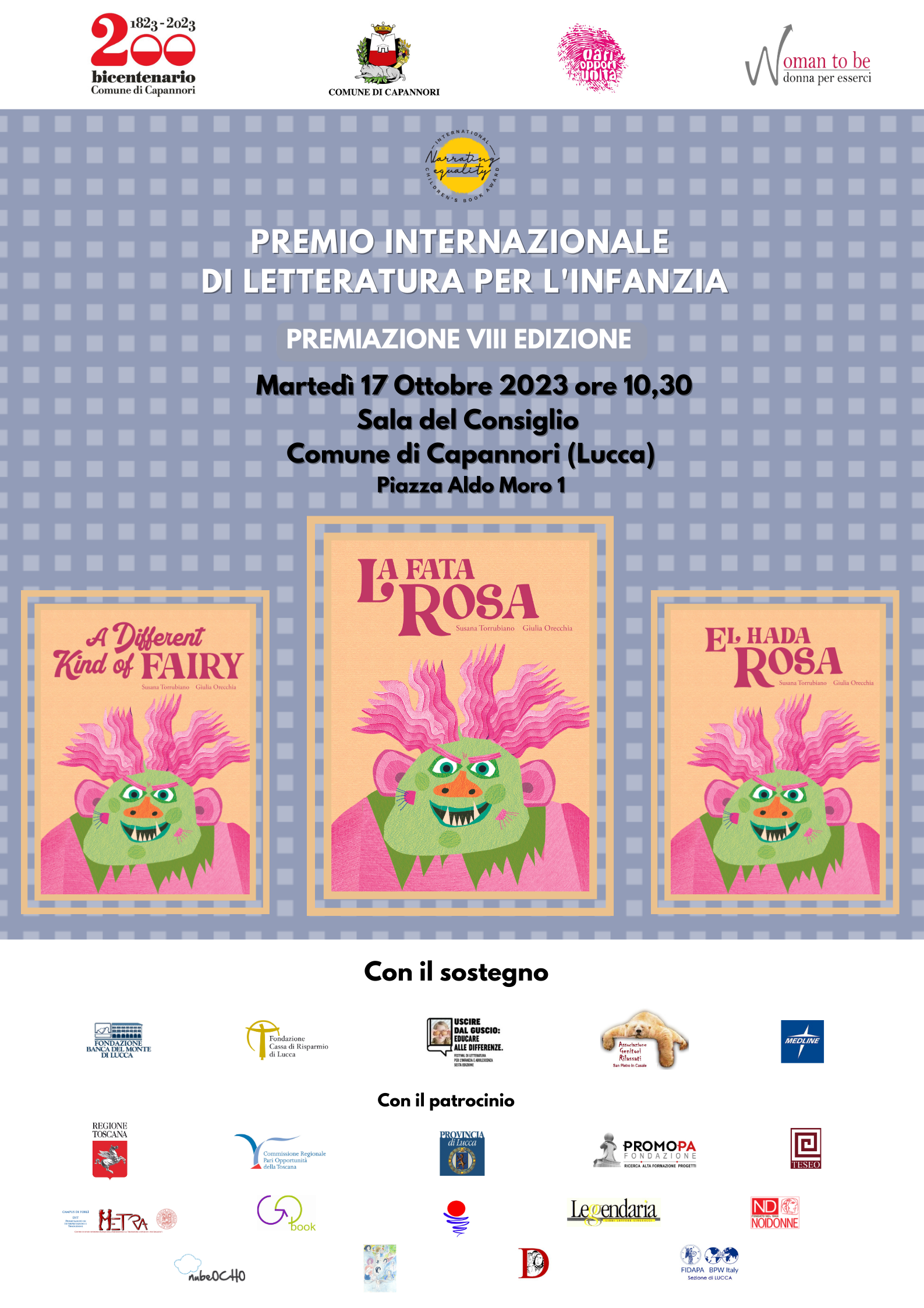 Sarà Capannori ad ospitare, martedì 17 ottobre con inizio alle ore 10.30 nella sala consiliare del comune, la premiazione della VIII Edizione del Premio Internazionale di Letteratura per l'Infanzia 'Narrating Equality' che vede vincitore il libro "La fata Rosa" di cui è autrice la spagnola Susana Torrubiano, illustrato da Giulia Orecchia ed edito da NubeOcho edizioni.